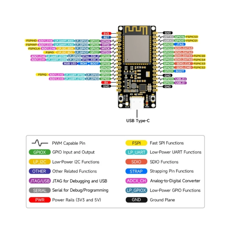 La frecuencia principal es de hasta 160MHz, con memoria integrada de 8MB integrada con WiFi 6, 5 y comunicación inalámbrica IEEE 802.15.4 (Zigbee y Thread), proporcionando un rendimiento de RF superior.