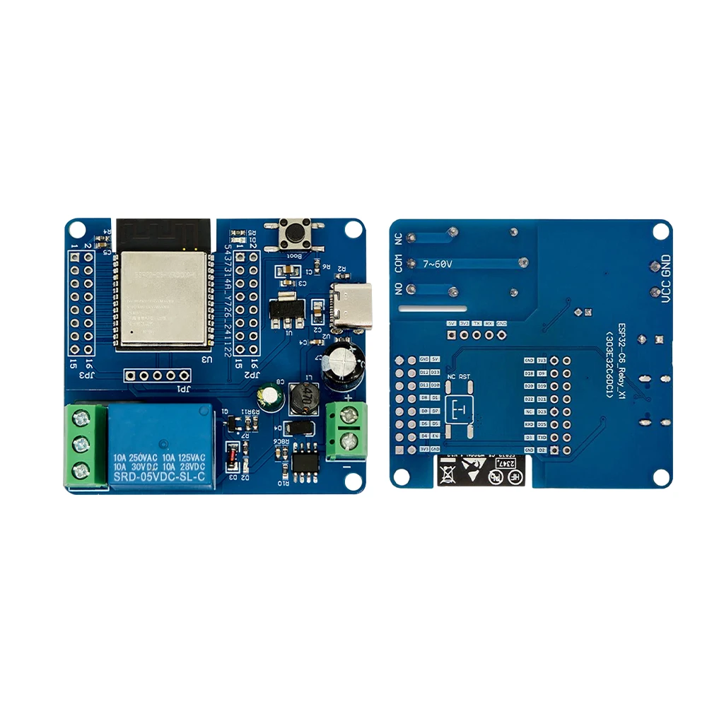 The ESP32-C6Relay_X1 single relay development board is a development board based on the ESP32-C6 module. All V/0 ports are fully connected and support DC5-60V power supply mode. It is equipped with programmable buttons, LEDs, and relays on board, making it convenient for developers to quickly verify and develop prototypes, and bringing more possibilities to IoT control scenarios.