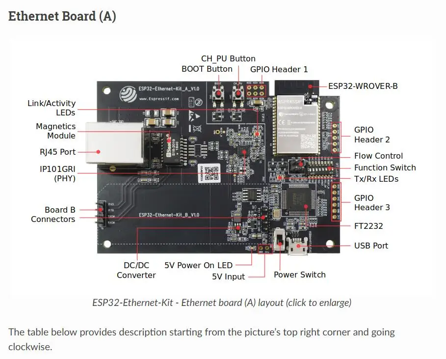 Comprar ESP32-Ethernet-Kit ESP32 Ethernet Kit Ethernet a WiFi Placa de desarrollo compatible con Bluetooth ESP32-WROVER-E Módulo sin cables