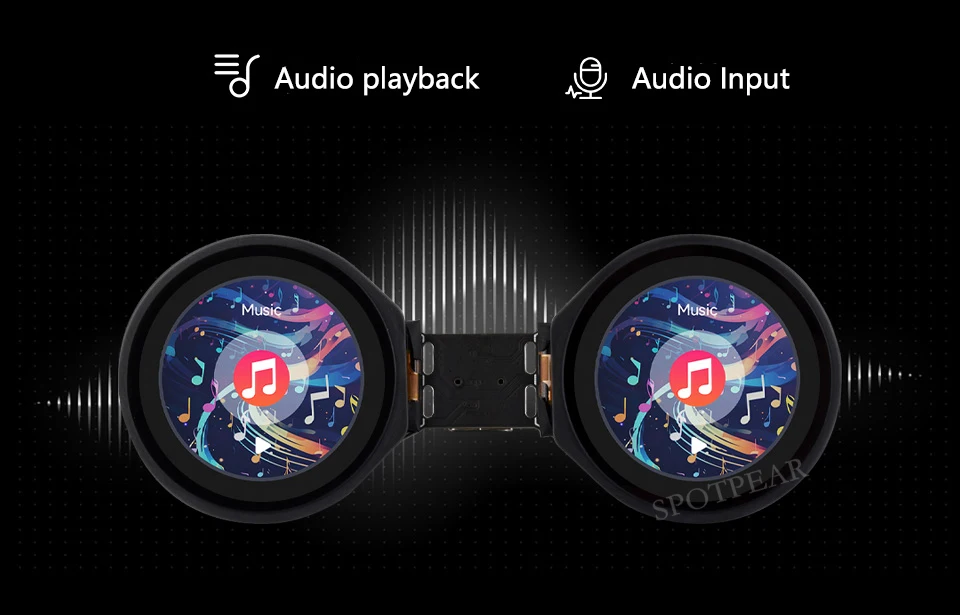 Dos pantallas LCD de 1,28 pulgadas integradas, resolución de 240 × 240, 65K colores, versión de pantalla táctil opcional