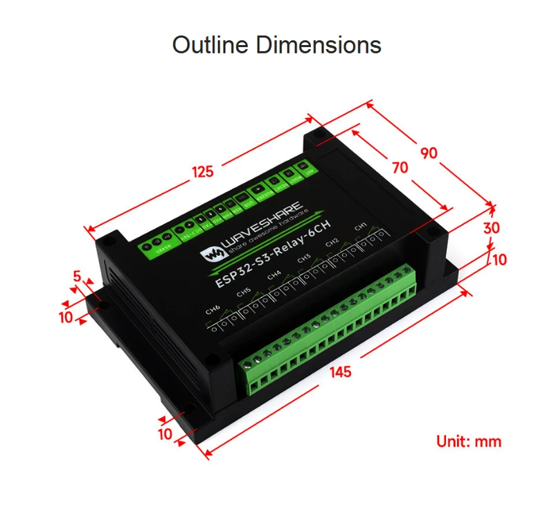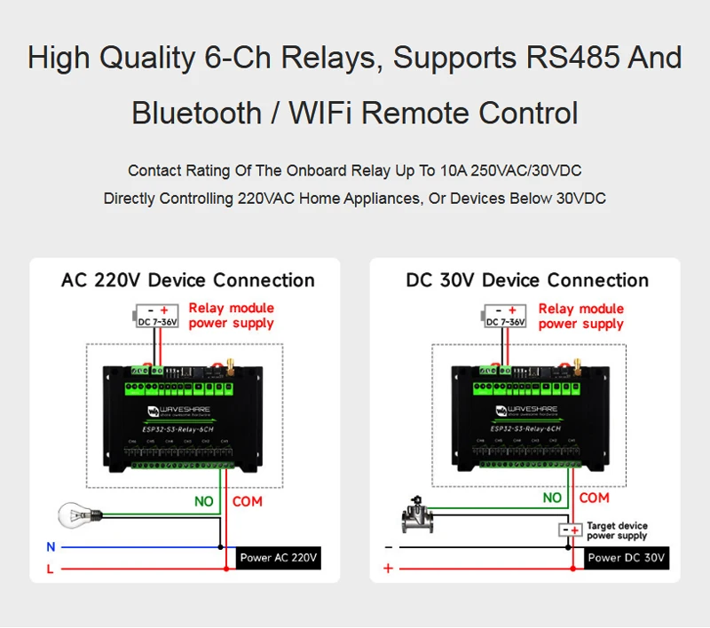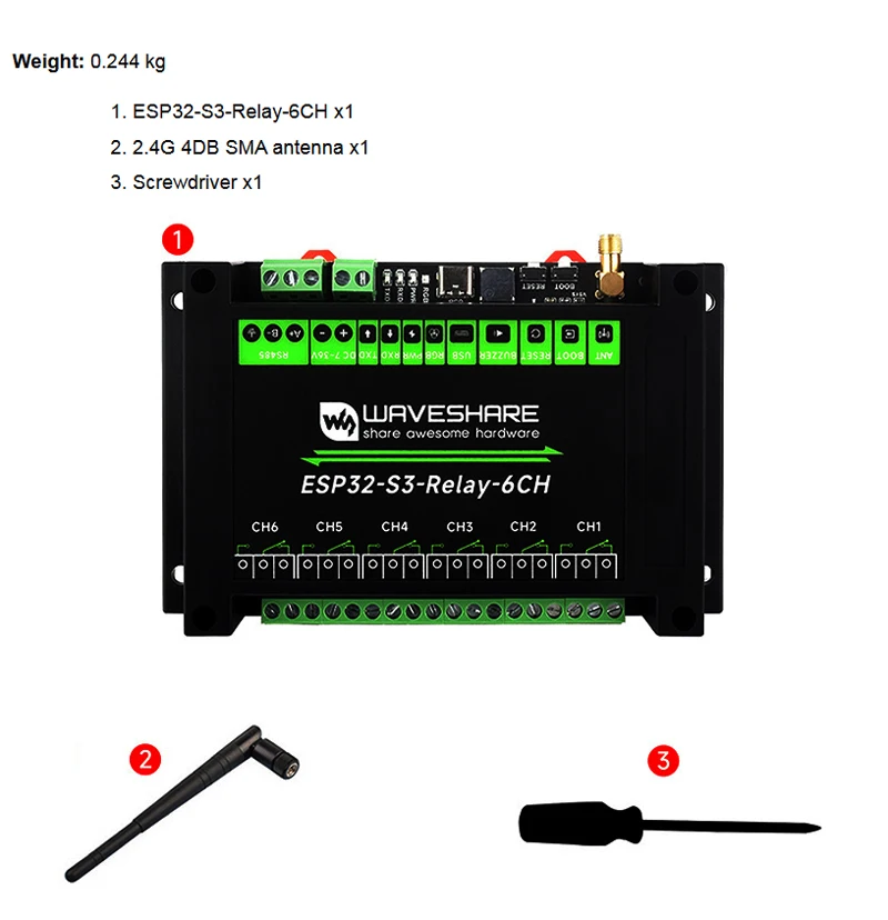 Módulo industrial de 6 canales ESP32-S3 WiFi/Bluetooth RS485 integrado de interfaz de sombrero Pico Circuitos de red Módulo de relé