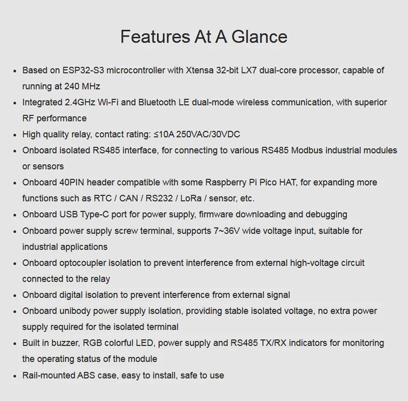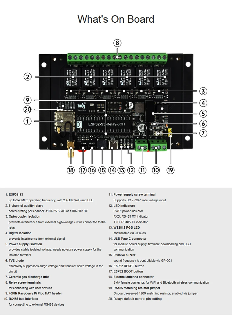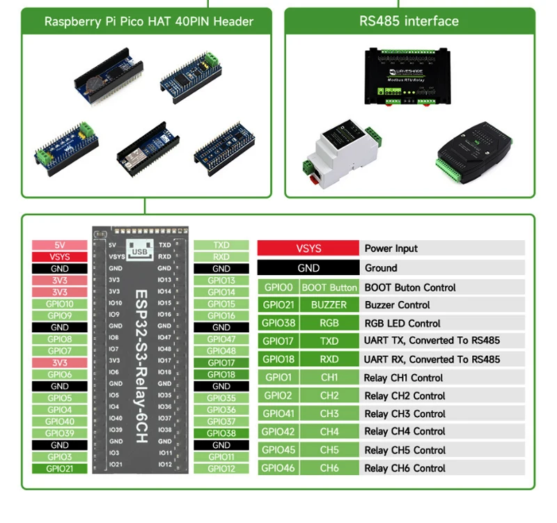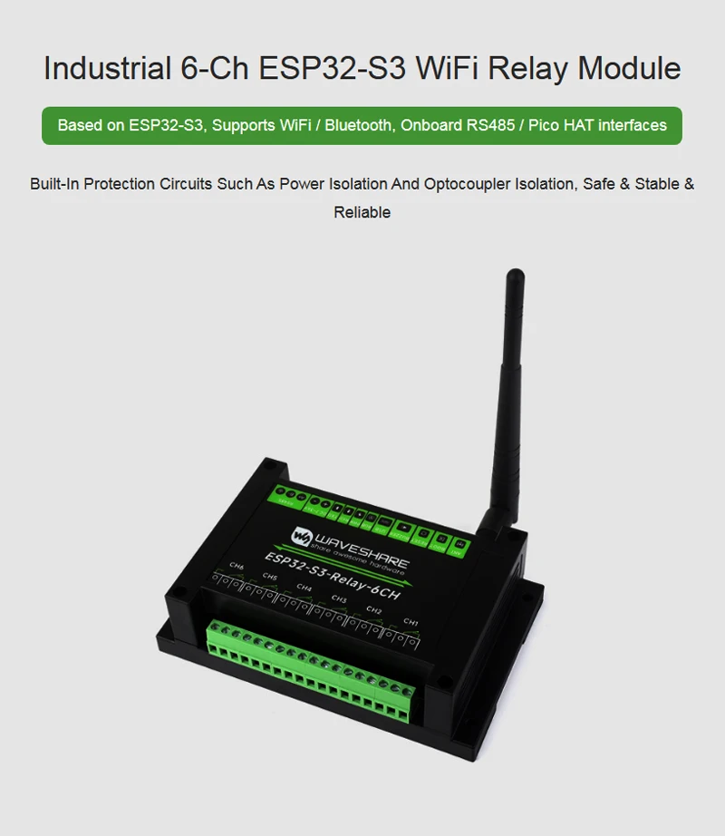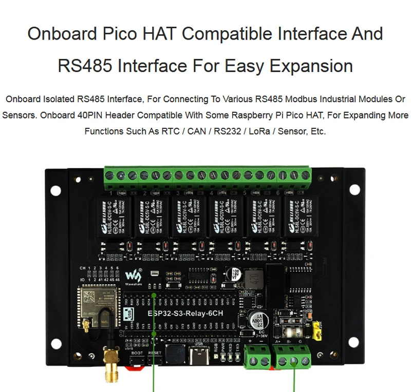 Comprar ESP32-S3 industrial de 6 canales WiFi/Bluetooth RS485 Interfaces Pico HAT integradas Módulo de relé de circuitos de red