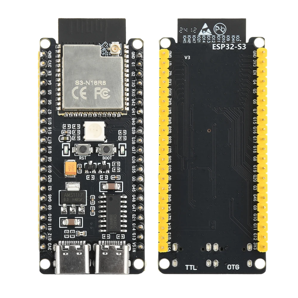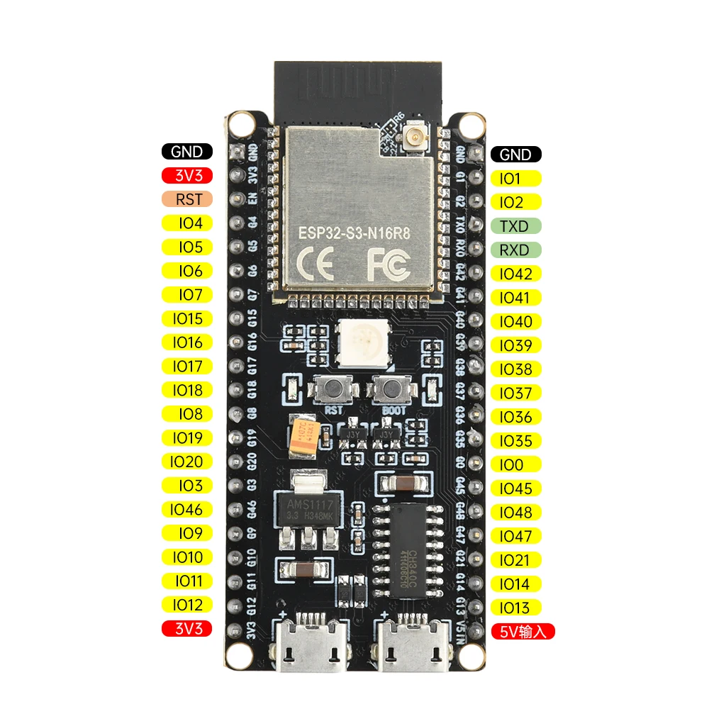 ESP32-S3 es un sistema MCU de bajo consumo en chip (SoC) que admite Wi Fi de 2,4 GHz y Bluetooth de bajo consumo® LE) Comunicación inalámbrica.El chip integra Xtensa de alto rendimiento® Procesador dual core LX7 de 32 bits, coprocesador de potencia ultrabaja, banda base Wi Fi, banda base Bluetooth, módulo RF y periféricos.