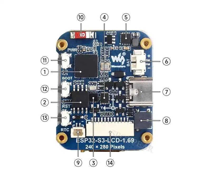 [] RST, BOOT y un botón lateral integrados con funciones personalizables, conveniente para el desarrollo de funciones personalizadas mediante botones