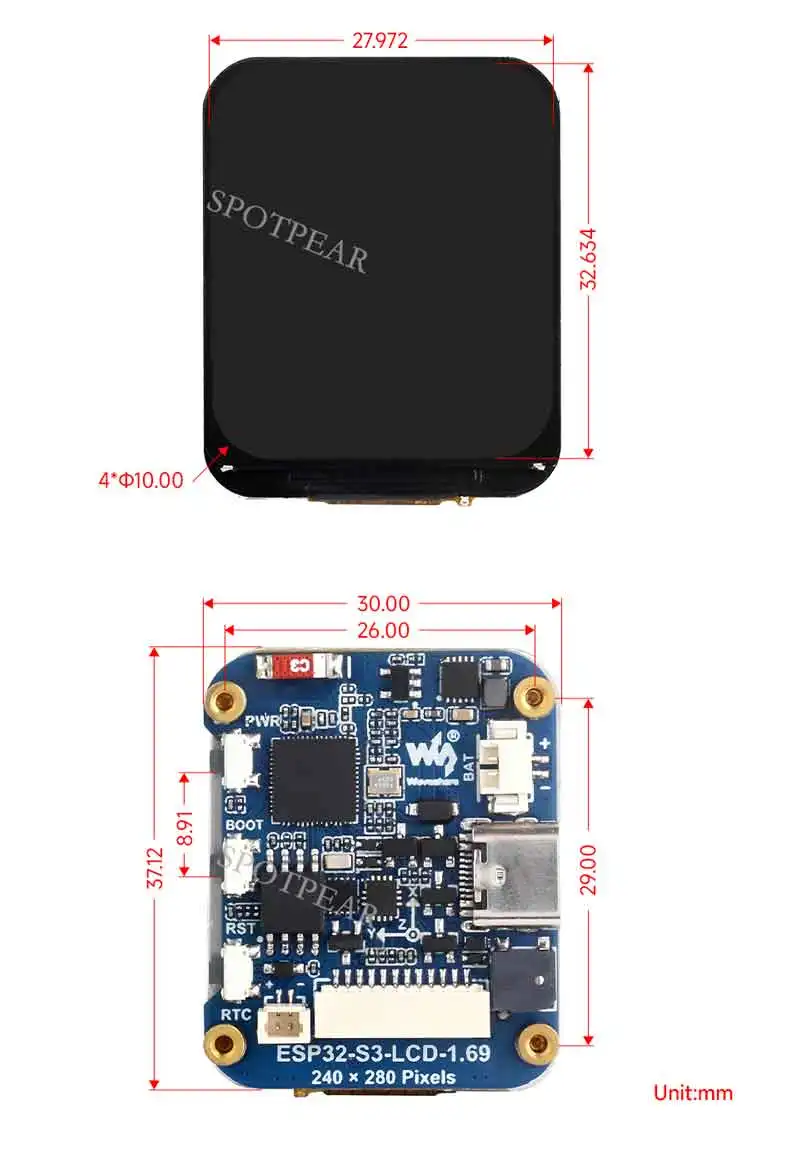 Equipado con un procesador dual-core Xtensa de 32 bits LX7 de alto rendimiento ESP32-S3R8, la frecuencia principal es de hasta 240 MHz