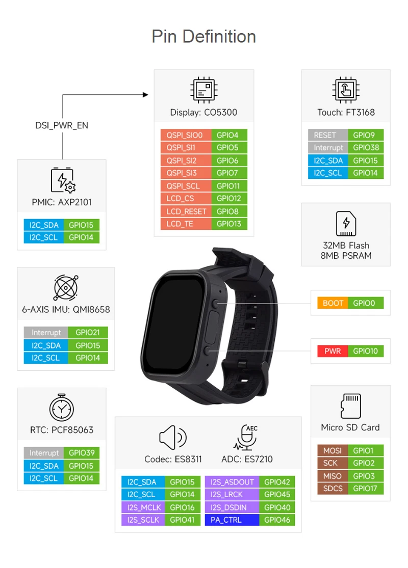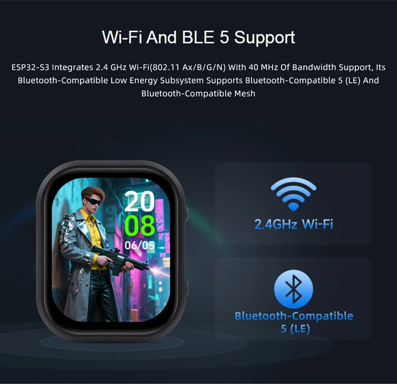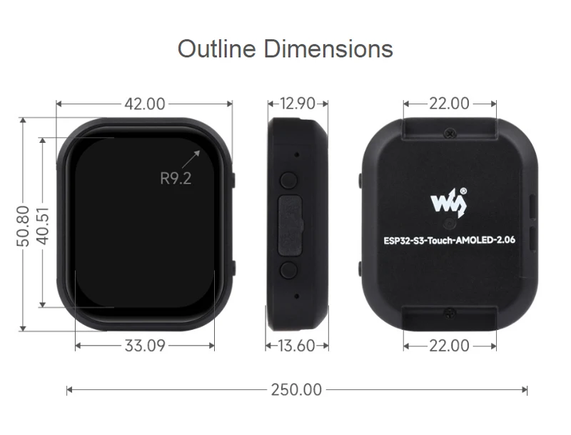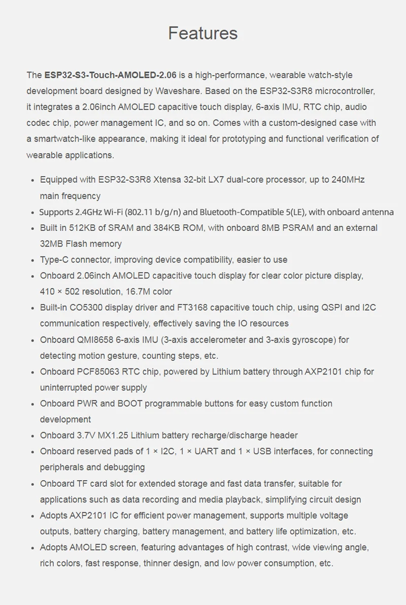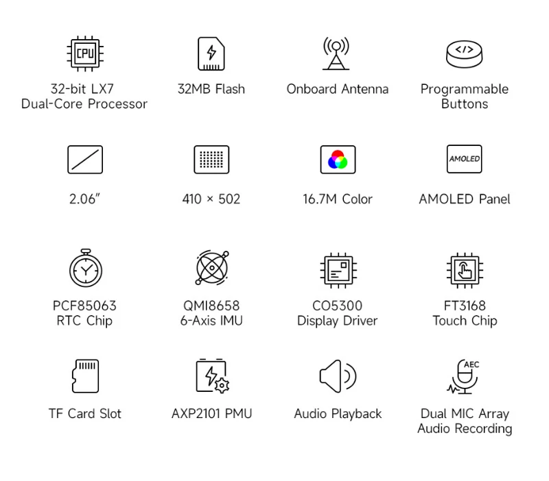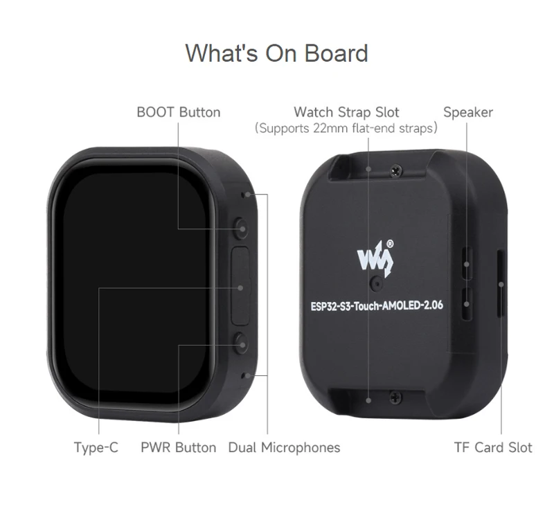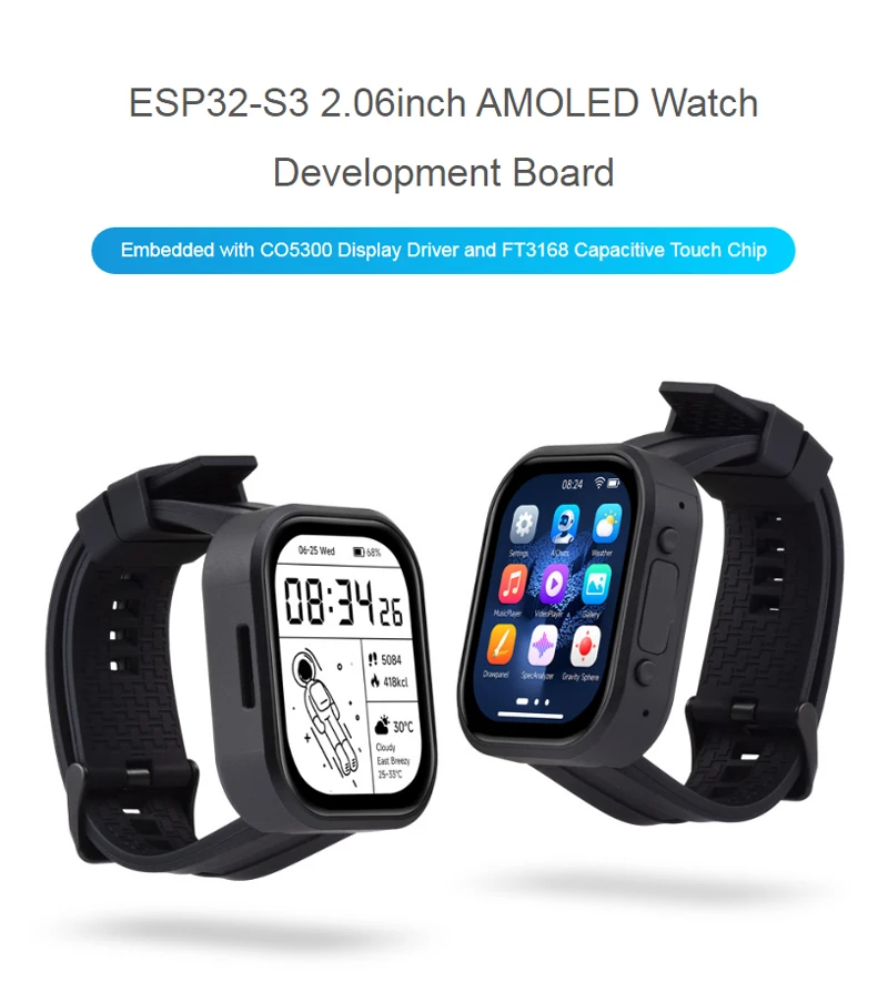 Placa de desarrollo de pantalla AMOLED ESP32-S3 de 2,06 pulgadas, chat de voz AI 410 × 502 para reloj programable con pantalla táctil