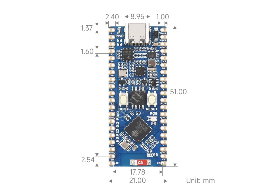 El ESP32-S3-Pico es una placa de desarrollo de microcontroladores de bajo costo y alto rendimiento con un tamaño compacto y ricas interfaces periféricas.