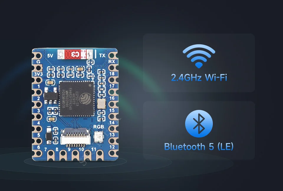 [] ESP32-S3 integra Wi-Fi de 2,4 GHz (802.11 B/G/N) con 40 MHz de compatibilidad con ancho de banda.Su subsistema Bluetooth de bajo consumo admite Bluetooth 5 (LE) y malla Bluetooth