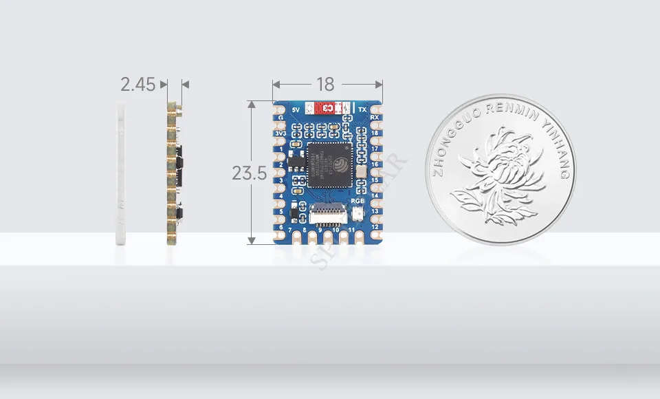 [] Mini placa de desarrollo ESP32-S3, basada en el procesador de núcleo dual ESP32-S3FH4R2, frecuencia de funcionamiento de 240 MHz, placa adaptadora de puerto USB opcional