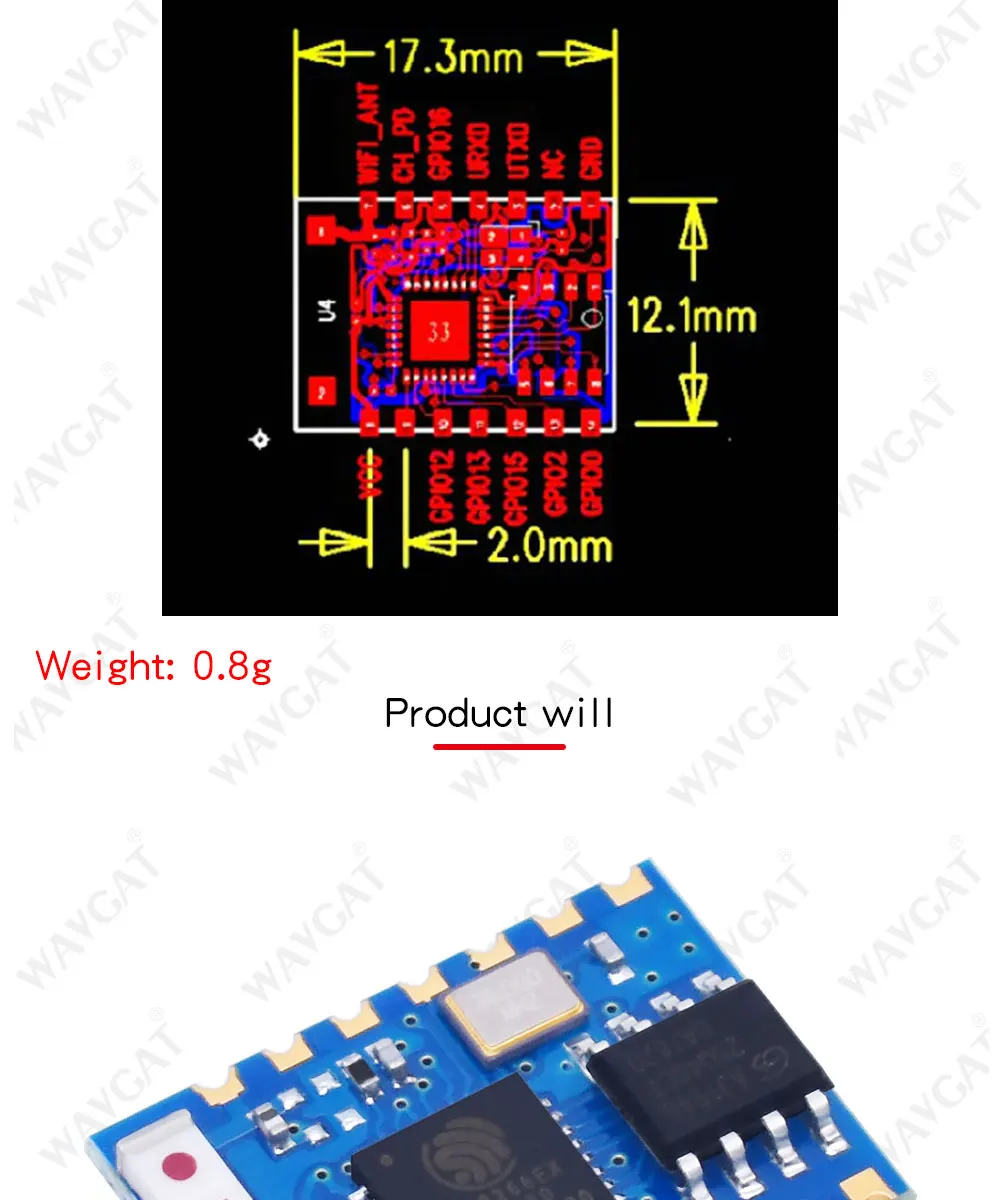 ESP8266 ESP03 ESP-03 SPI WIFI módulo receptor transceptor inalámbrico módulo de Control remoto procesador RISC integrado interfaz I2S
