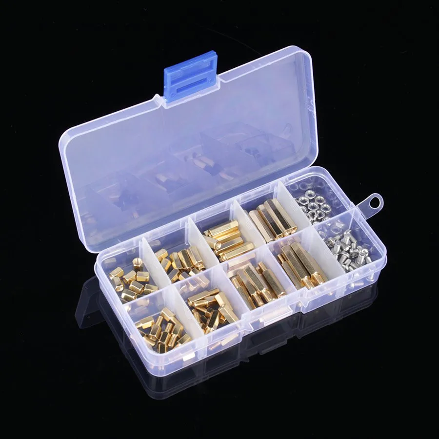 120 unids/set M3 macho hembra latón separador espaciador placa PCB tornillos hexagonales tuerca surtido