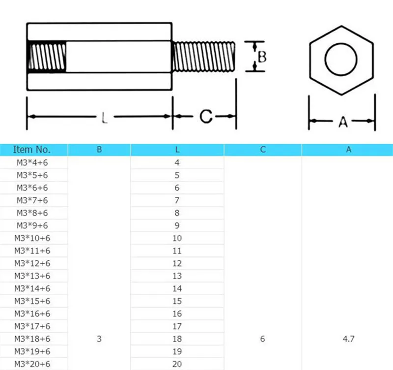 Comprar Espaciador de tuerca hexagonal M3, tornillo de espaciado, Pilar roscado de latón, PCB, ordenador, placa base, 20 unidades