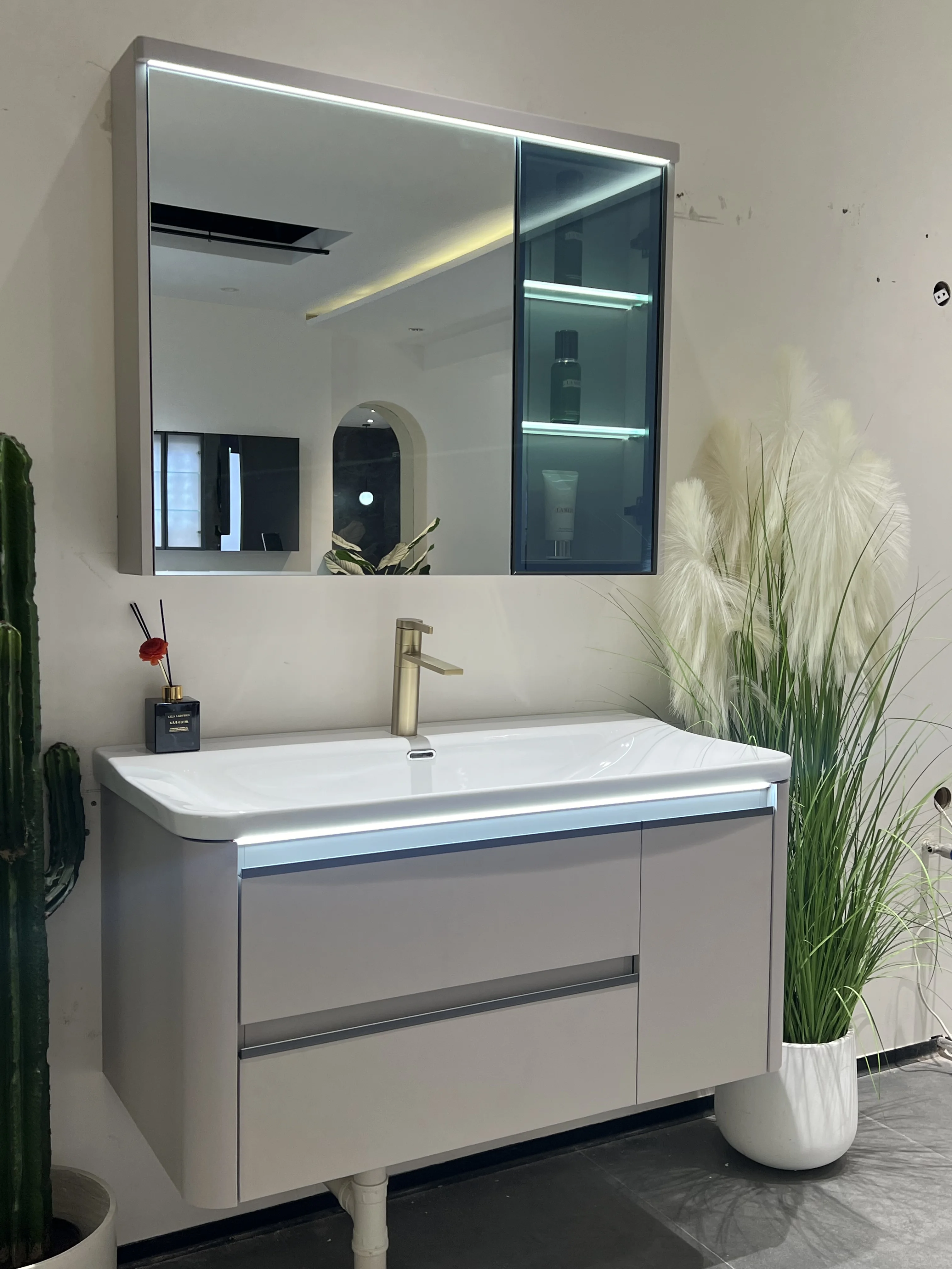 Comprar Espejo inteligente LED moderno para baño, tocador de madera, tamaño personalizable, pared del dormitorio de cerámica, tocador inteligente para dormitorio y baño, 2025