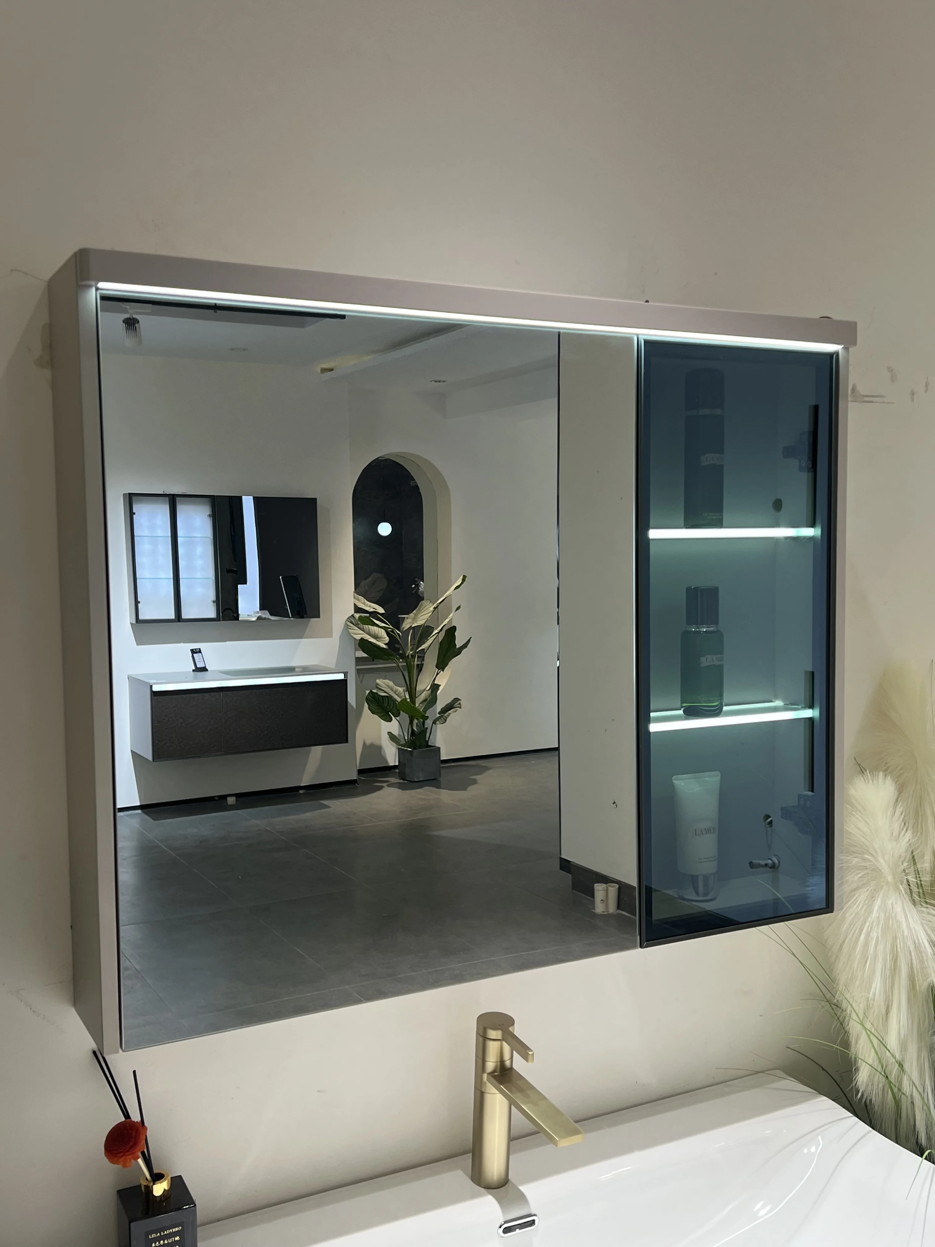 Comprar Espejo inteligente LED moderno para baño, tocador de madera, tamaño personalizable, pared del dormitorio de cerámica, tocador inteligente para dormitorio y baño, 2025