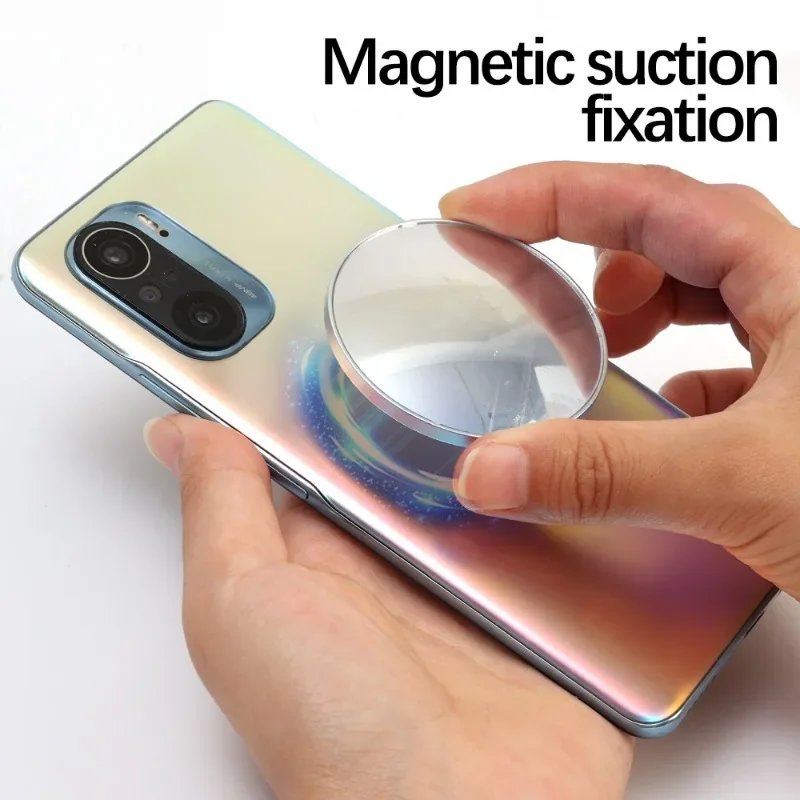 Modo de uso:1. Saque el espejo magnético para selfies y retire la película protectora2. Se puede conectar directamente al teléfono móvil o a la carcasa del teléfono móvil con MagSafe, y otros modelos se pueden utilizar con anillo guía magnético.3. Frente al espejo, la figura en el espejo está en el medio, y la imagen tomada por el teléfono móvil también está en el medio