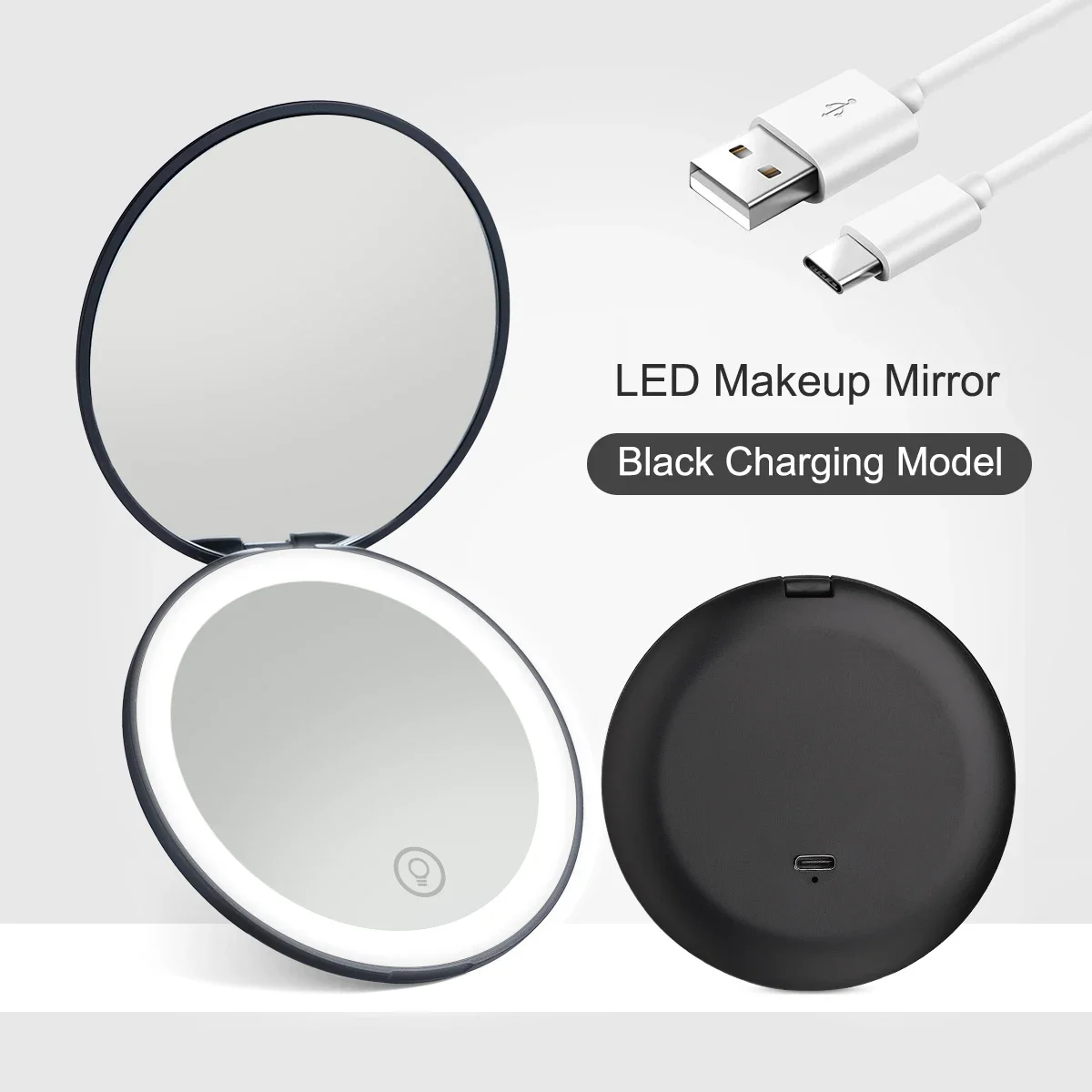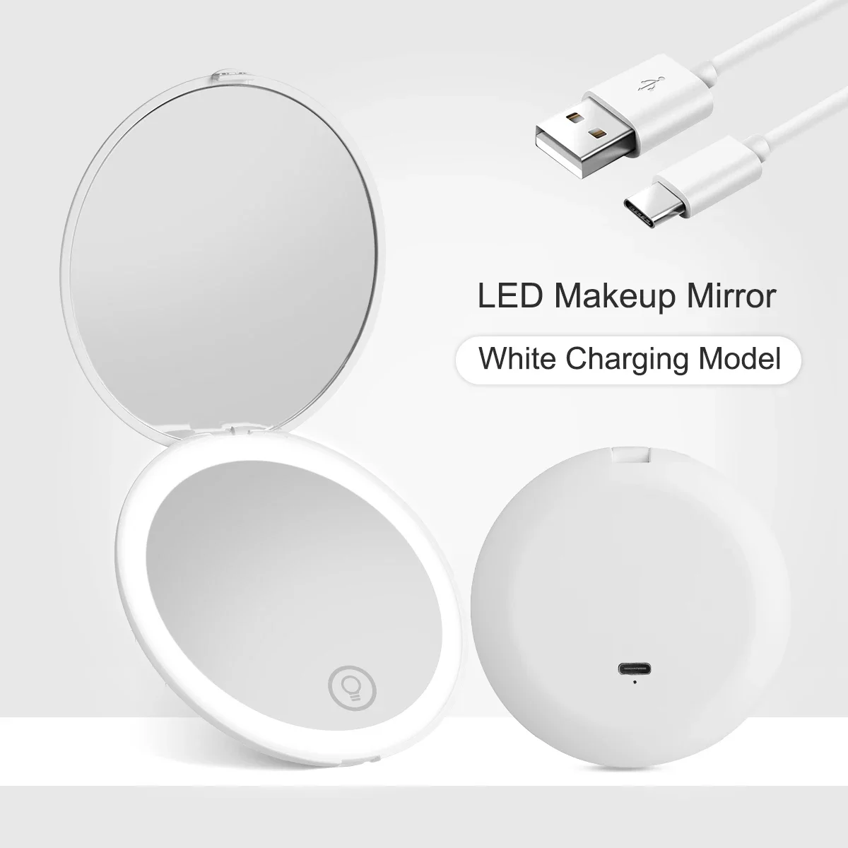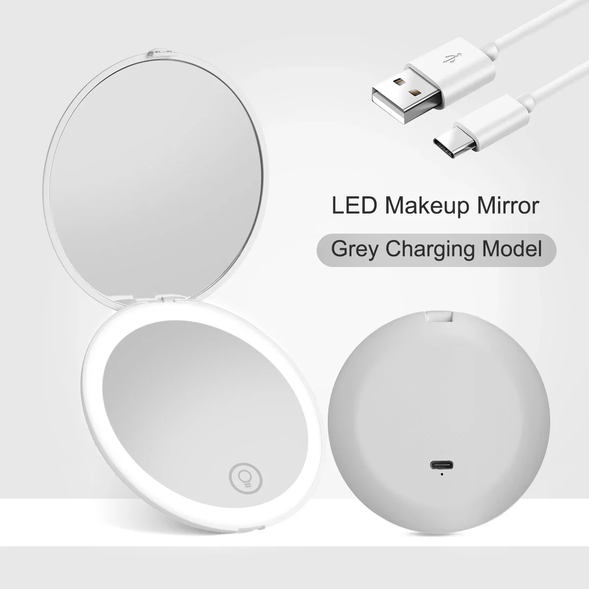 Comprar Espejo de maquillaje compacto iluminado, espejo cosmético de viaje LED recargable, portátil, plegable, doble cara, Mini espejo de tocador