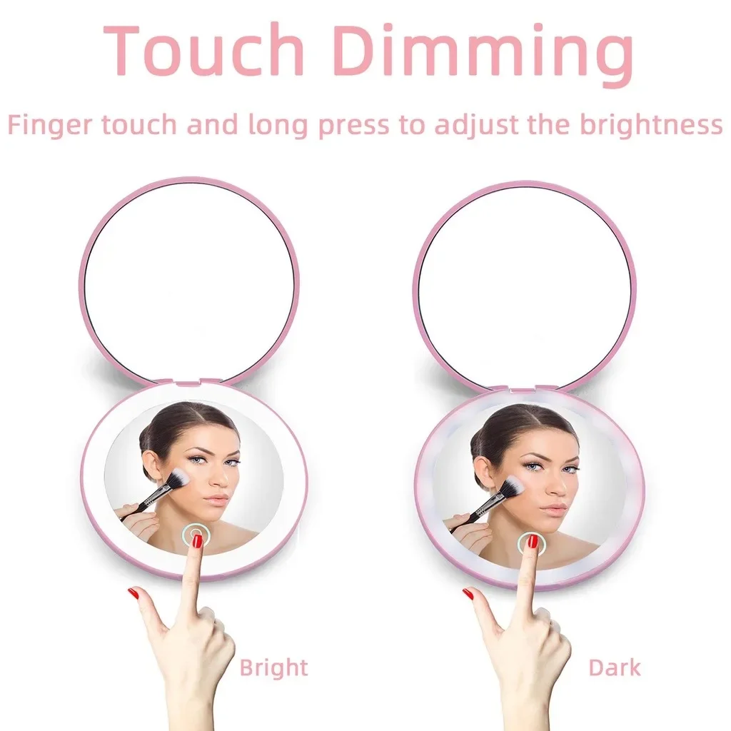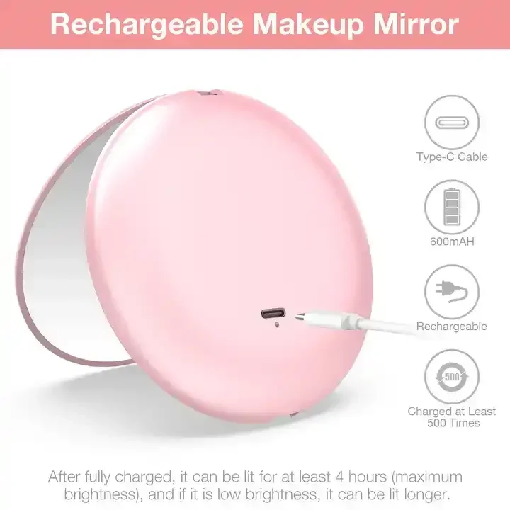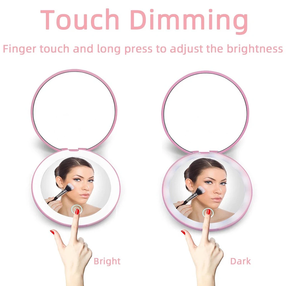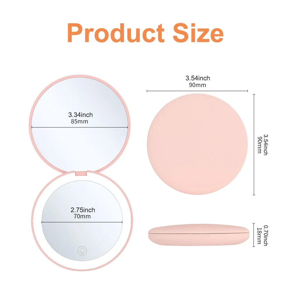 Comprar Espejo de maquillaje compacto iluminado, espejo cosmético de viaje LED recargable, portátil, plegable, doble cara, Mini espejo de tocador