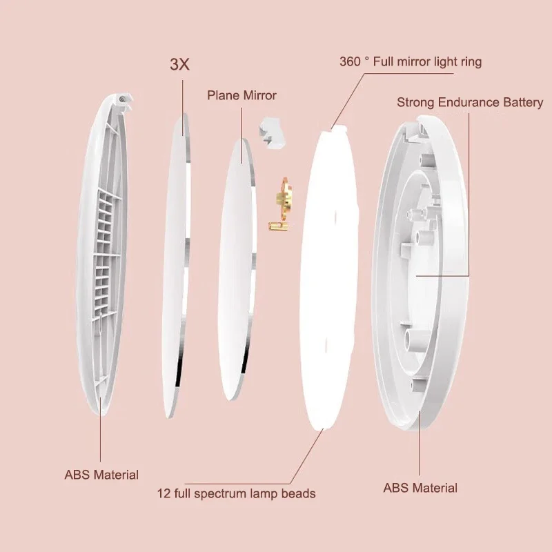 2. Espejo: un lado es un espejo de aumento 3x, el otro es un espejo LED HD
