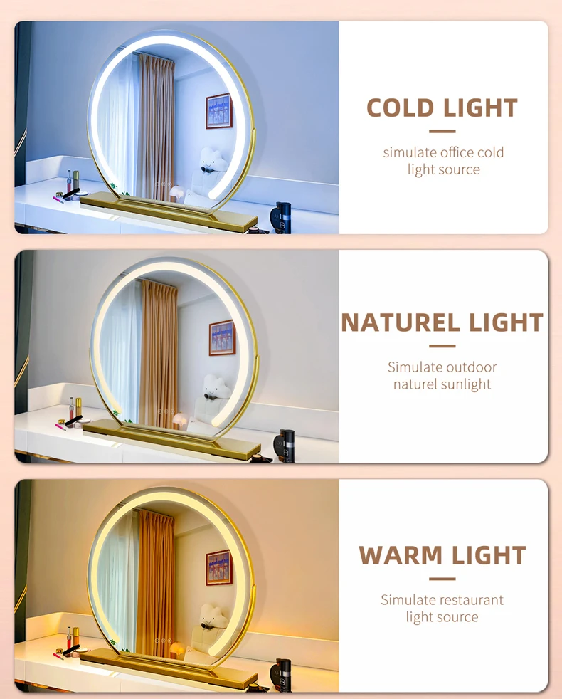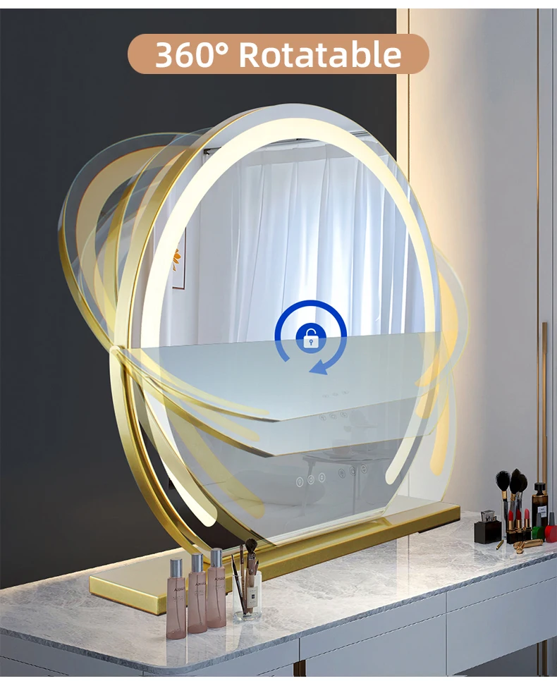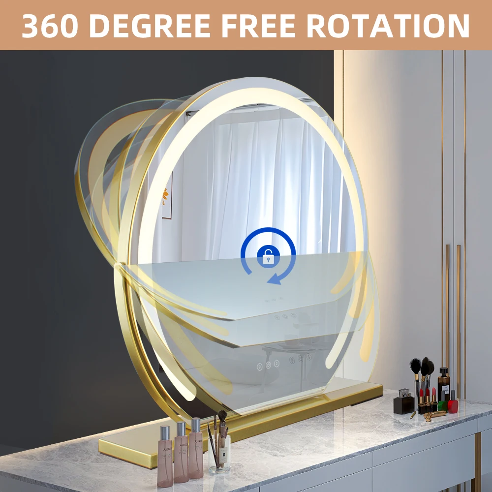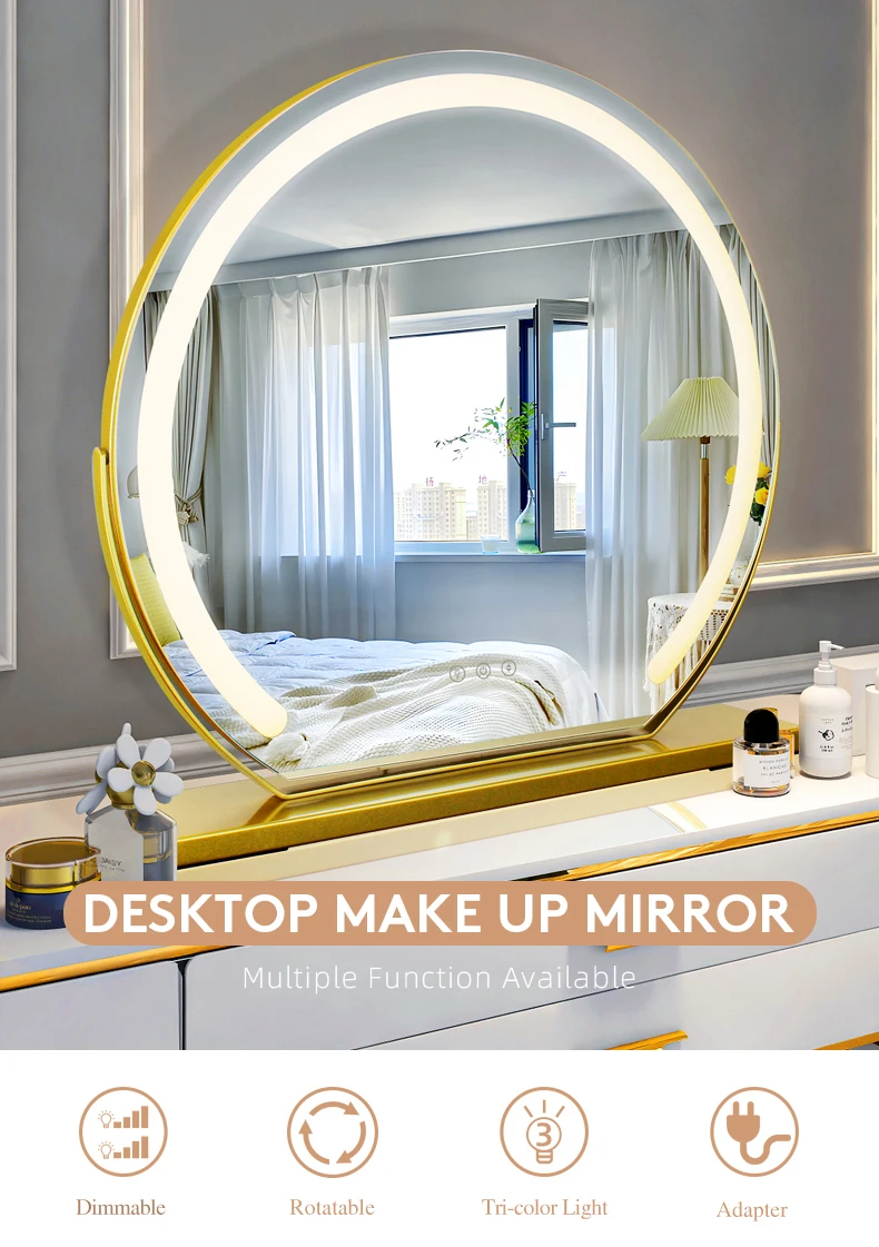 Espejo de maquillaje MantoLite con luz LED espejo de maquillaje de escritorio espejo redondo con luces LED maquillaje