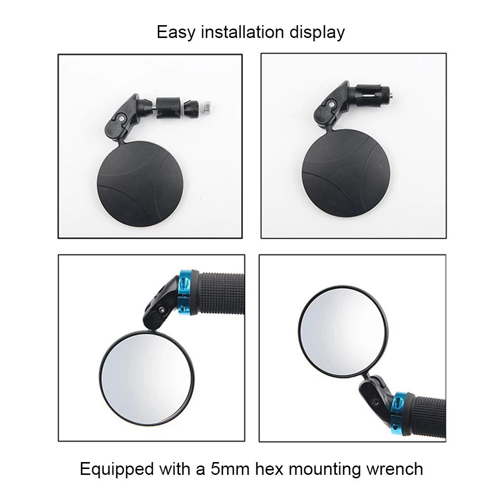Ajuste axial de 360 grados: este espejo retrovisor para bicicleta ofrece un espejo convexo gran angular para un campo de visión más amplio y un ajuste axial de 360 grados para una fácil visualización mientras se conduce