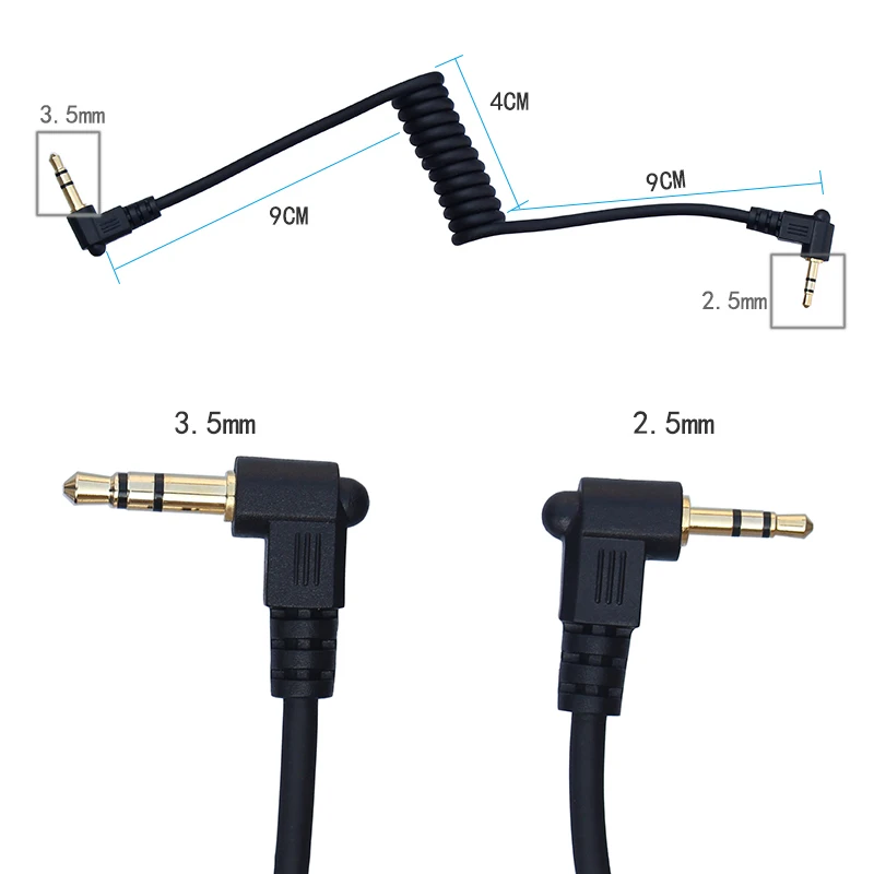 Perfecto para auriculares, sistemas de altavoces, estéreos y más.Conector 1: estéreo de 2,5mm con 3 polos en ángulo.Conector 2: 3 polos estéreo de 3,5mm en ángulo.Color: NegroEnchufe chapado en oroLongitud máxima: 30cmLongitud mínima: 20cm Comprar Espiral de Audio en espiral para micrófono de cámara, 3,5mm a 2,5mm, macho a macho, 3 polos, 90 grados, 20cm