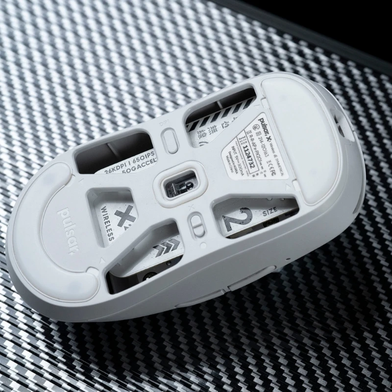 Nota:Después de quitar la película protectora transparente en los pies del ratón, Alinee cuidadosamente la ranura de los pies-en la parte inferior del ratón para la carcasa-, luego aplique una ligera presión para adaptarse al pie.
