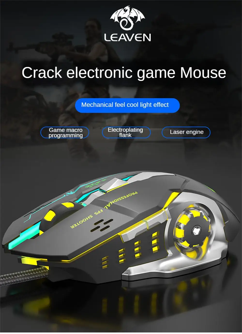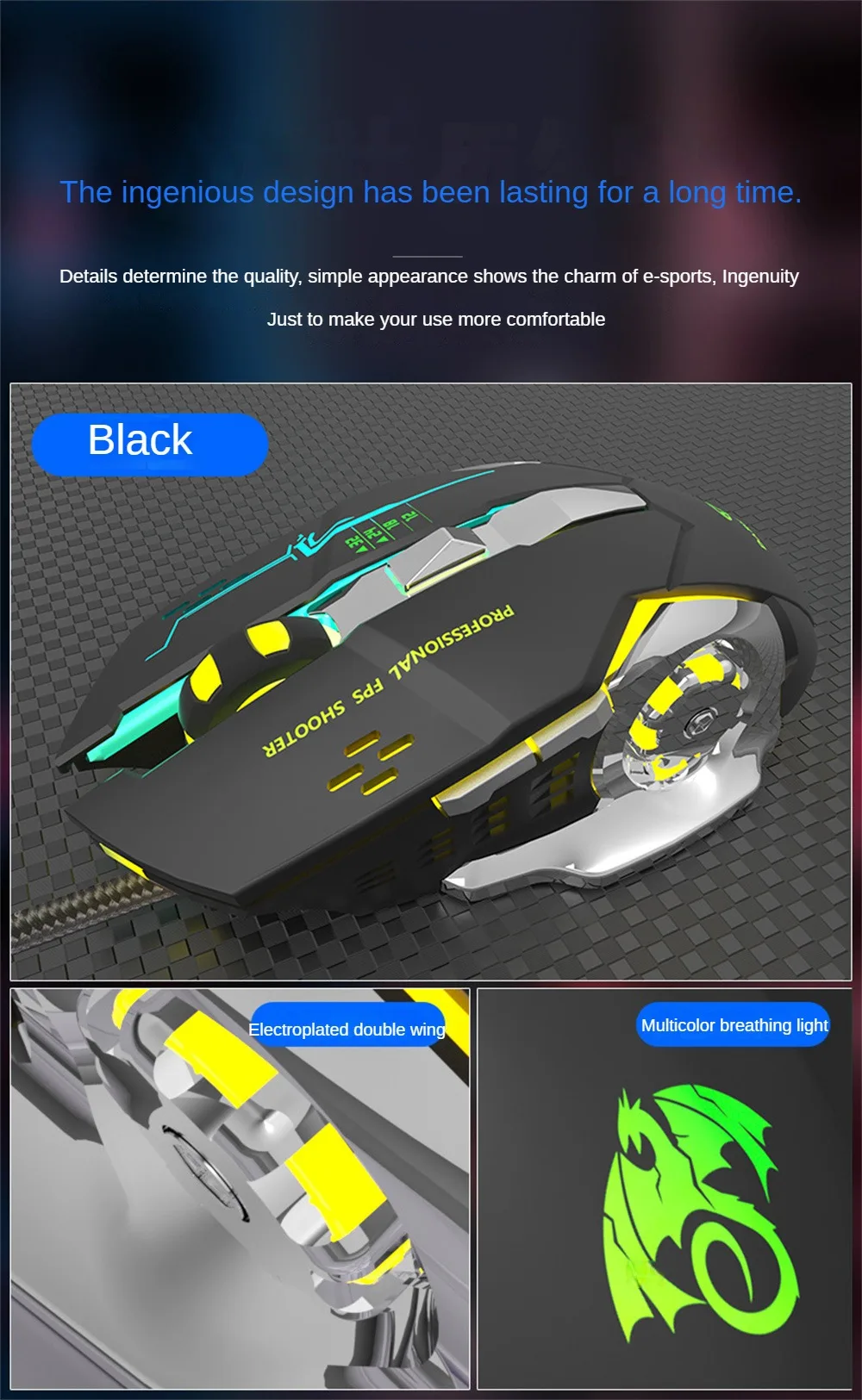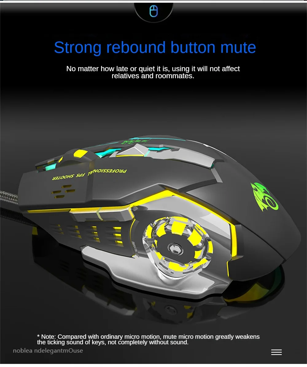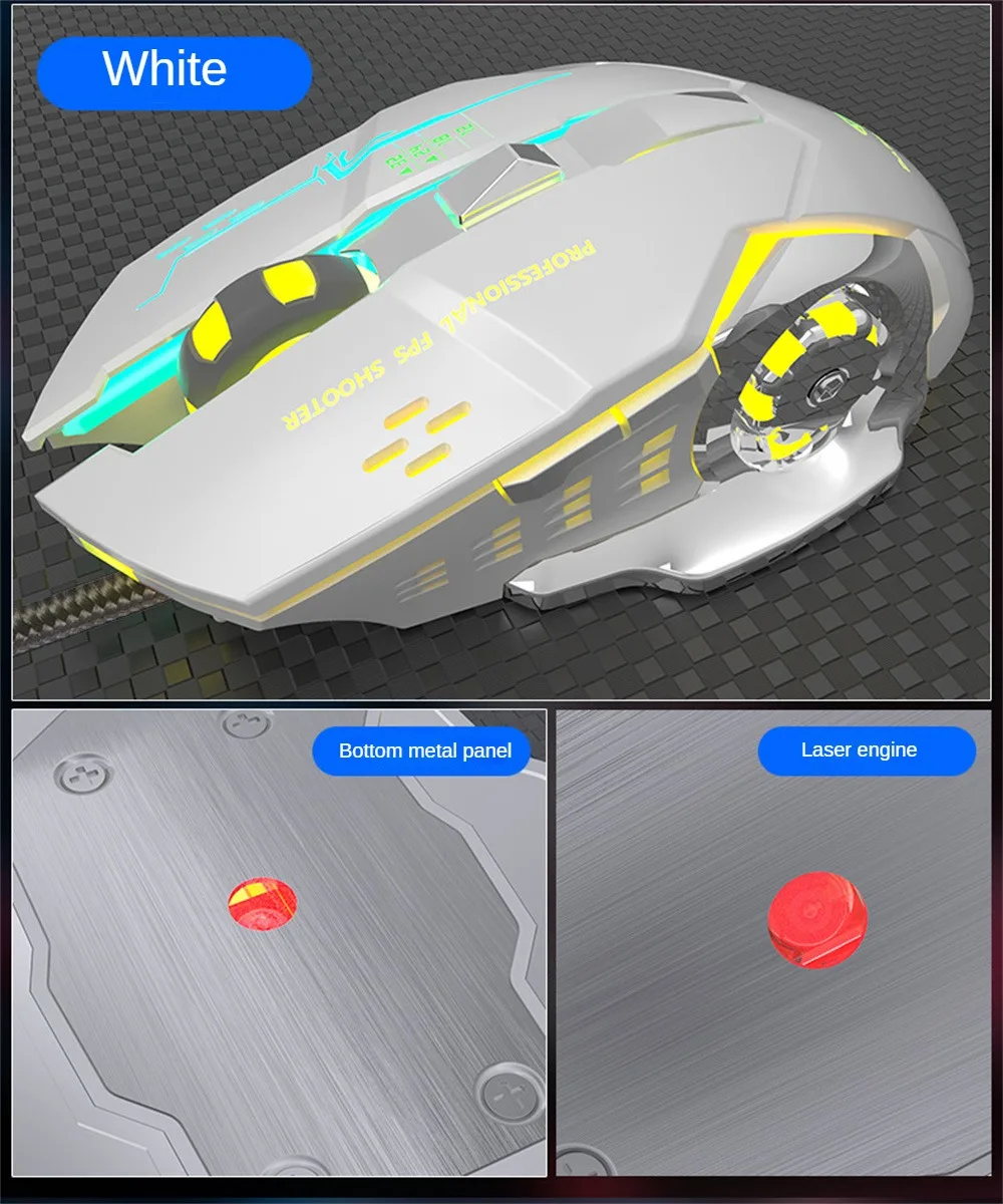 Comprar Esports-ratón de juego con 6 botones, Mouse ergonómico de 3500dpi, clic silencioso, 7 colores, luz de respiración, placa inferior estable para ordenador portátil de escritorio X6
