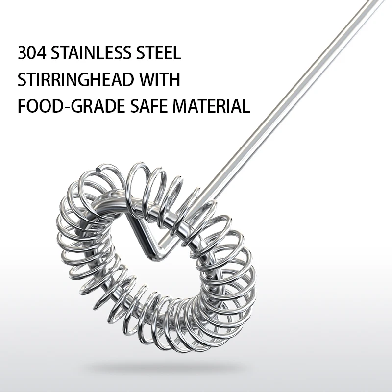 No stick, flexible y fácil de manejar Resorte de acero inoxidable y el cuerpo está hecho de plástico ABS Botón de encendido/apagado simple para una fácil operación Batidor de huevos no dañará utensilios de cocina o cuencos Fácil de limpiar con un paño húmedo
