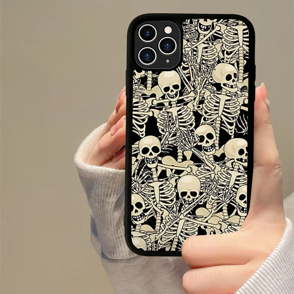 Esqueleto Bro cráneo funda de teléfono de silicona PC + TPU para IPhone 11 12 13 14 15 16 Plus Pro Max cubierta