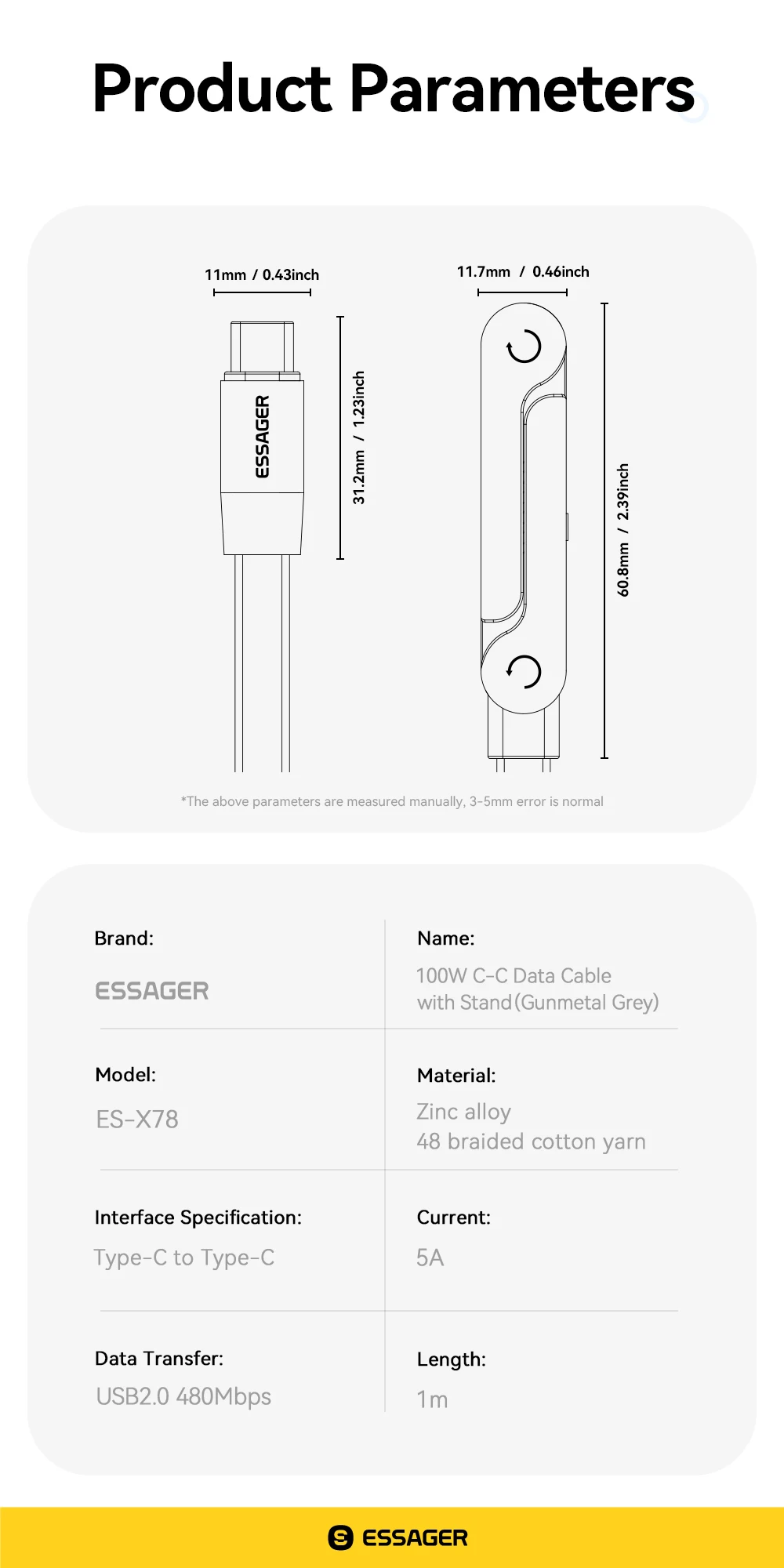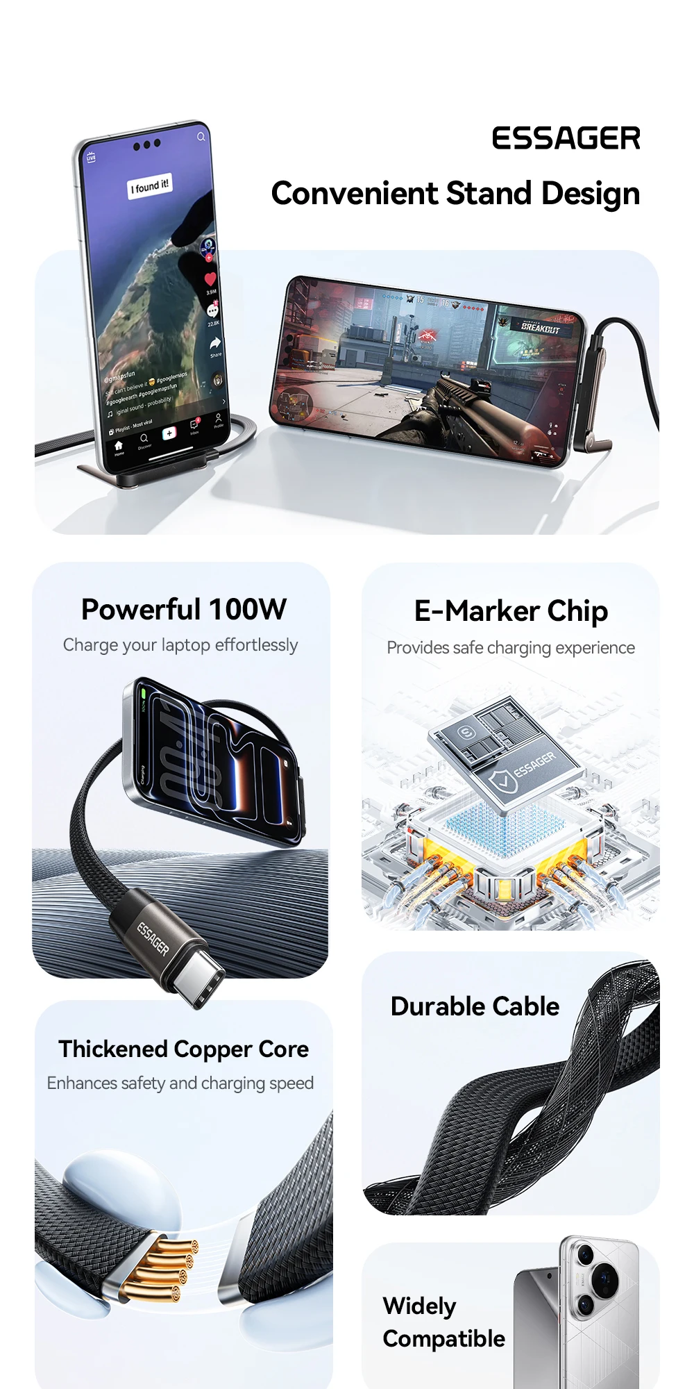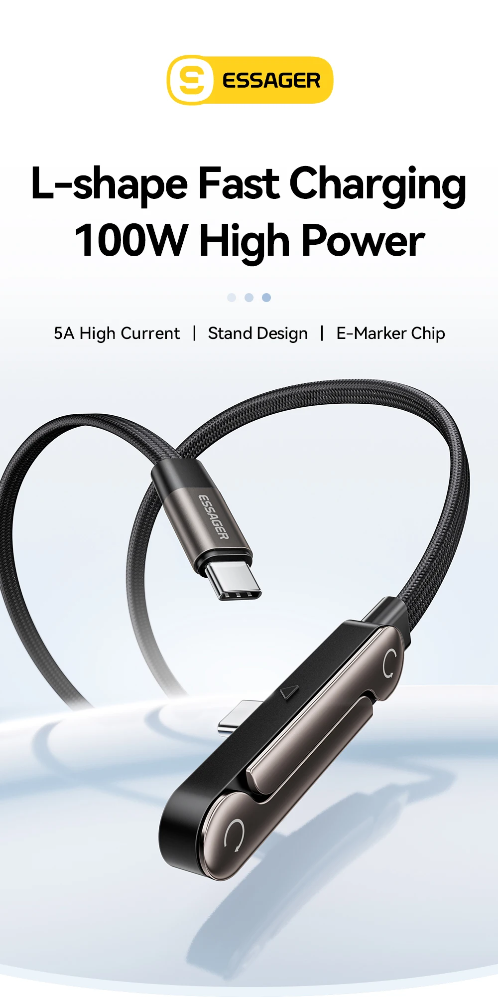Essager 100W Cable tipo C Cable plegable para teléfono PD carga rápida para iPhone 17 16 15 Pro Max Macbook Samsung Huawei Xiaomi