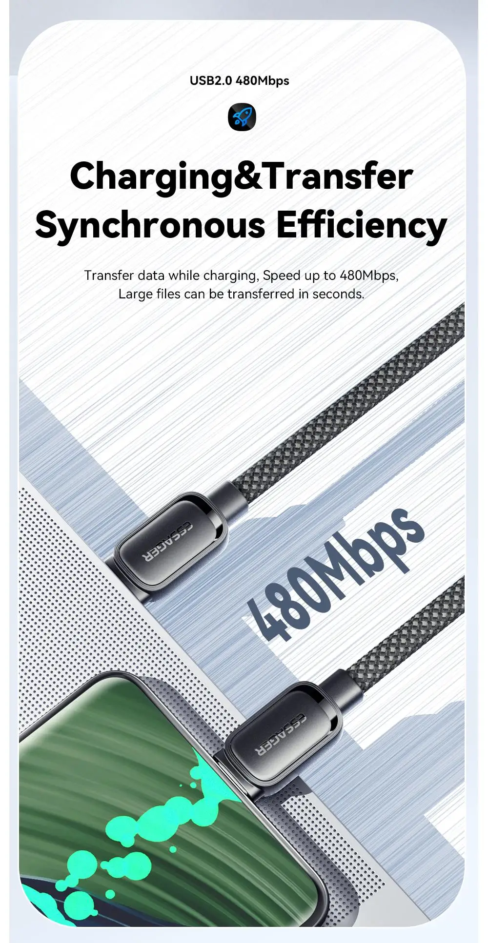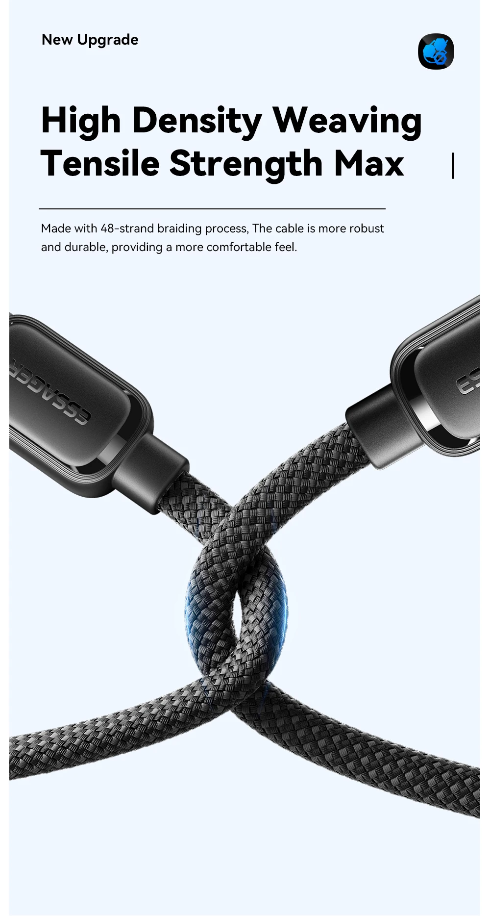 【Seguro e inteligente】-- El cable Essager PD 100W/60W tiene un chip inteligente que puede proteger su carga rápida más segura mediante la potencia de ajuste automático, claramente una mejor opción para la seguridad.