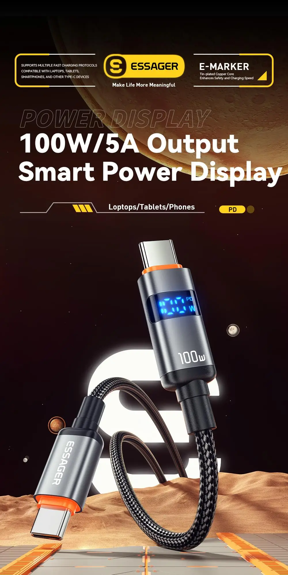 Comprar Essager 100W tipo C a tipo C Cable 5A PD carga rápida USB C a USB C Cable de pantalla para Macbook portátil iPad Xiaomi iPhone 16 15