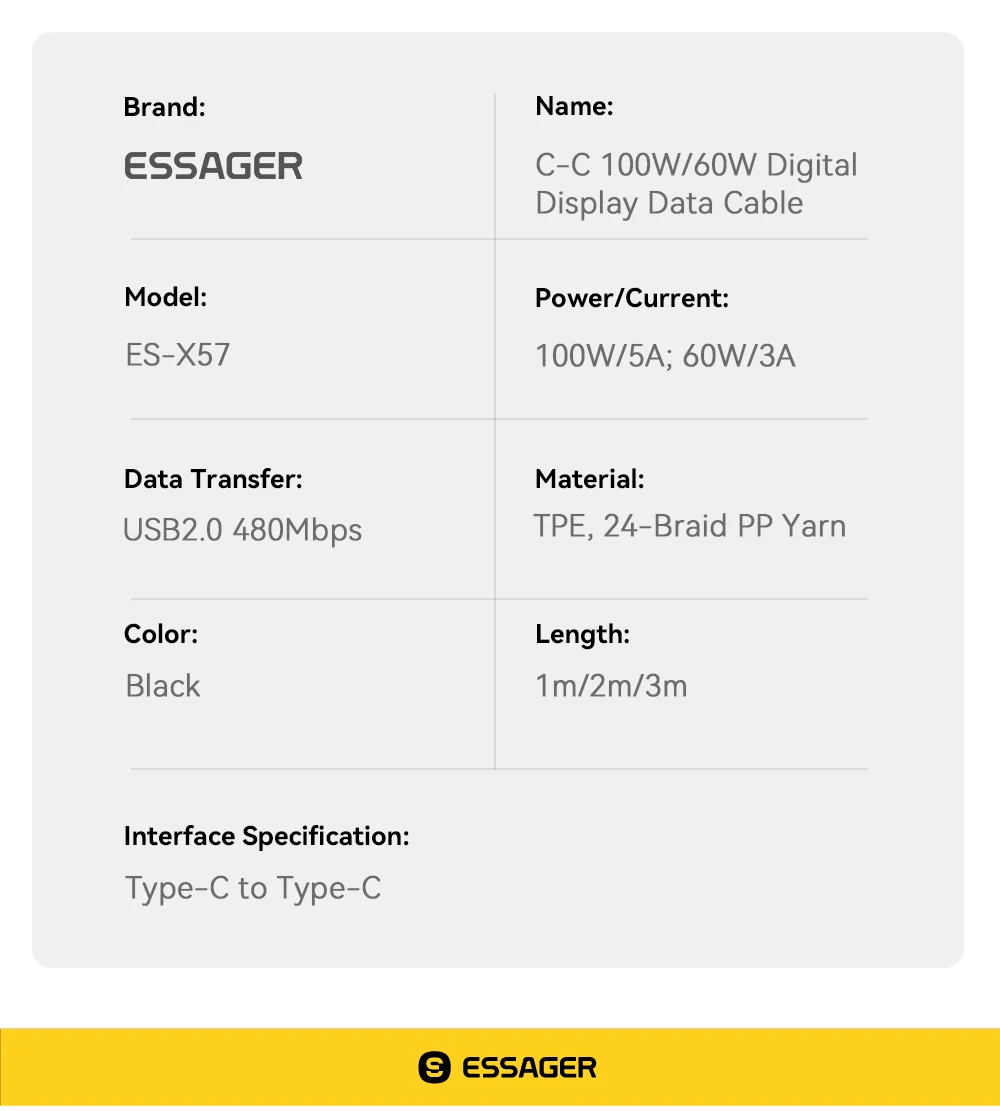 Comprar Essager 100W USB tipo C Cable 5A PD Cable de carga rápida para Macbook iPad iPhone 16 15Pro Samsung Xiaomi Cable de pantalla Digital