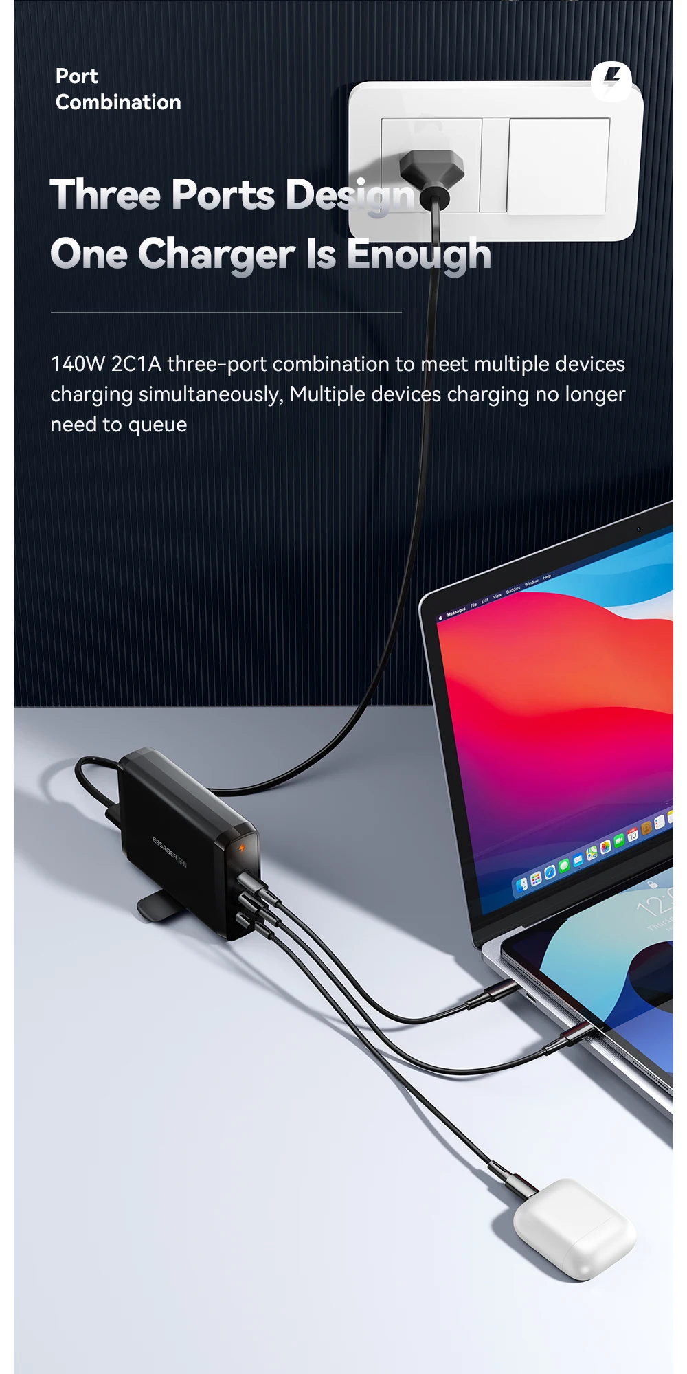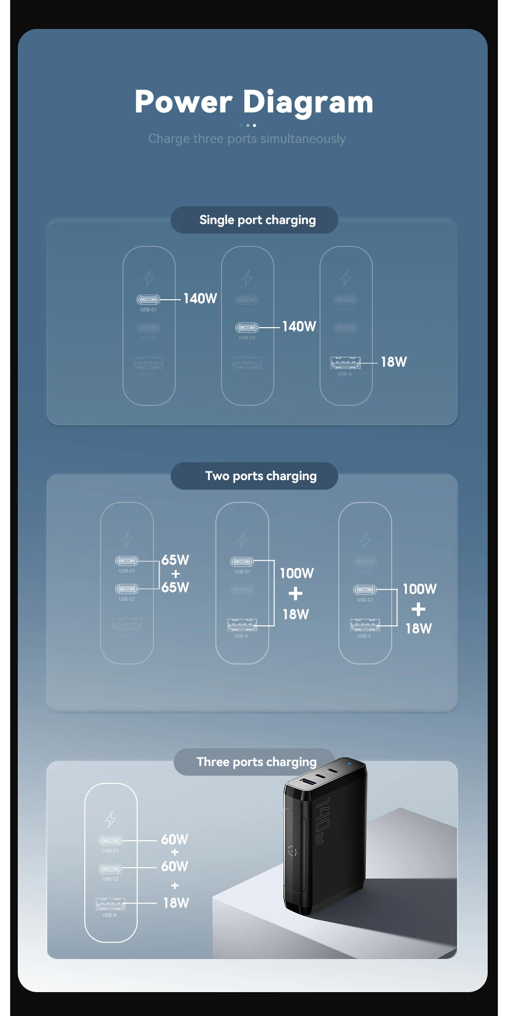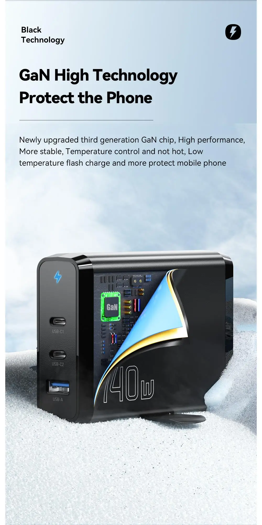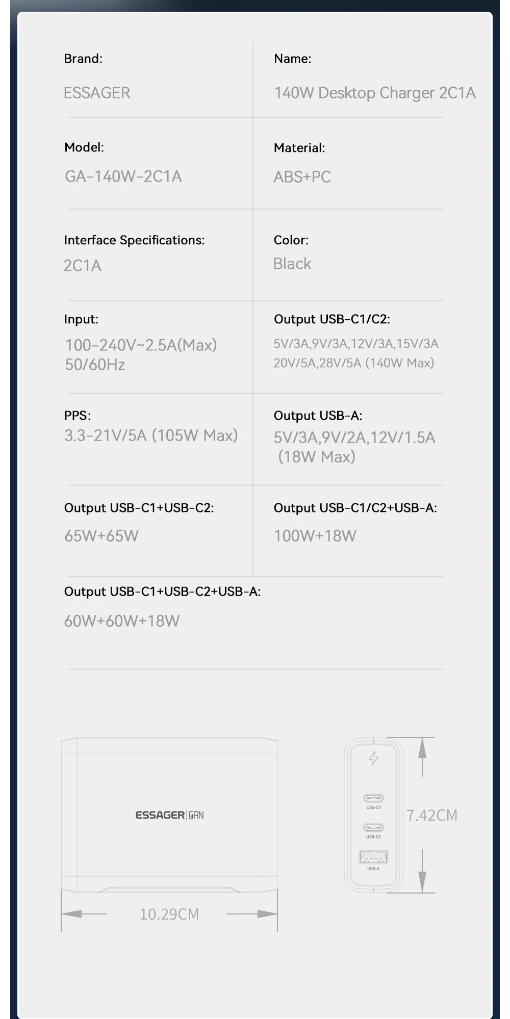 Especificación de la interfaz: 140W GaN 2 USB C + 1 USB A.
