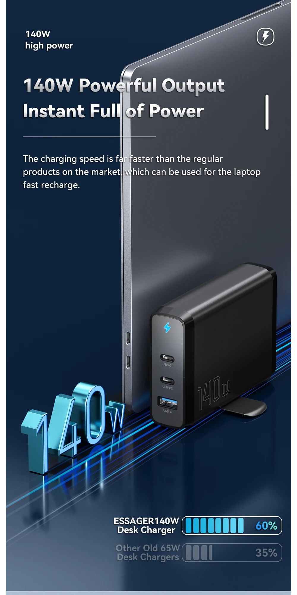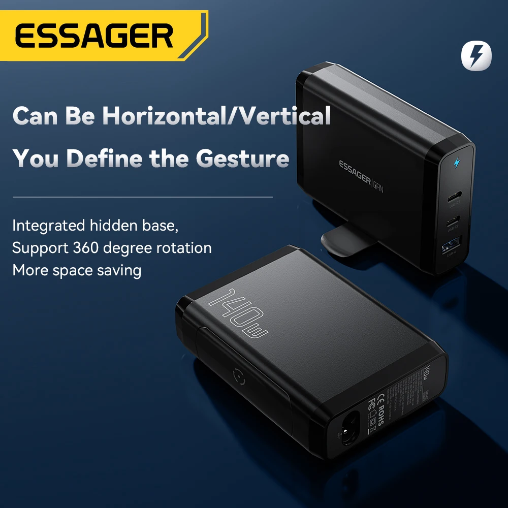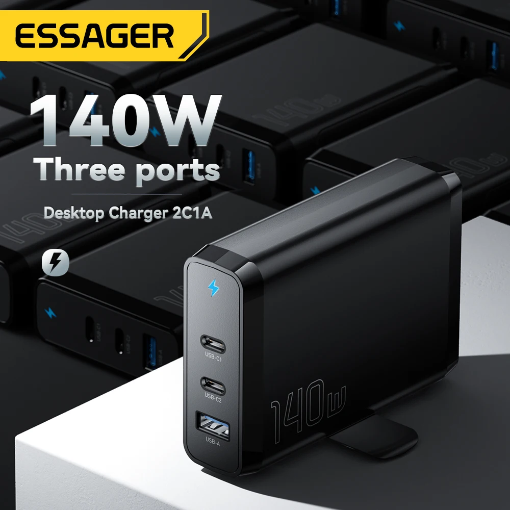Comprar Essager 140W GaN USB tipo C cargador de escritorio 100W carga rápida QC4.0 PD3.0 estación de carga rápida para MacBook Samsung iPhone portátil