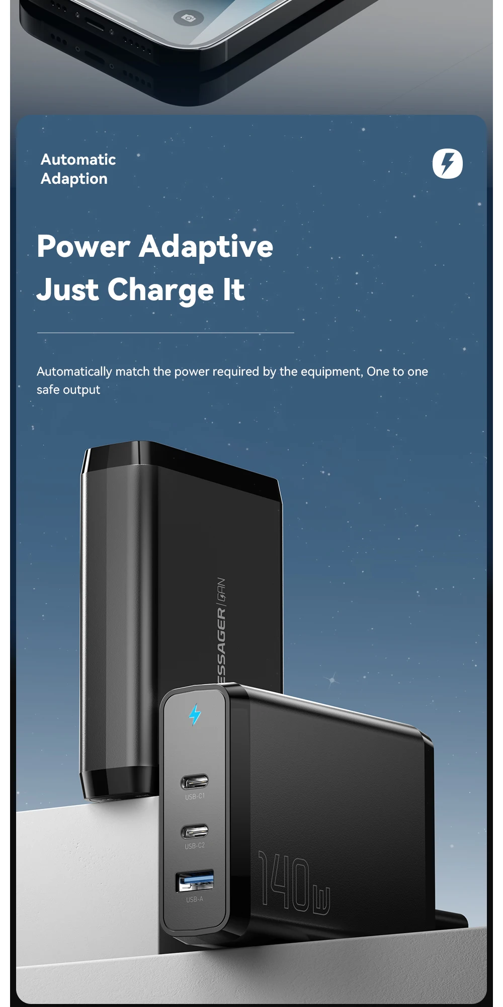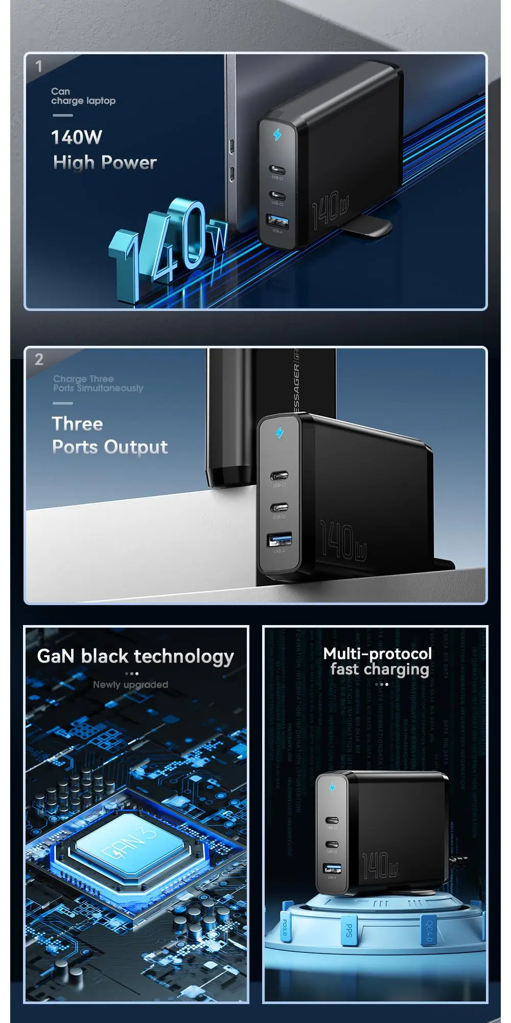 Nombre del producto:Cargador de escritorio GaN de 140 Wy 100WCargador de escritorio GaN