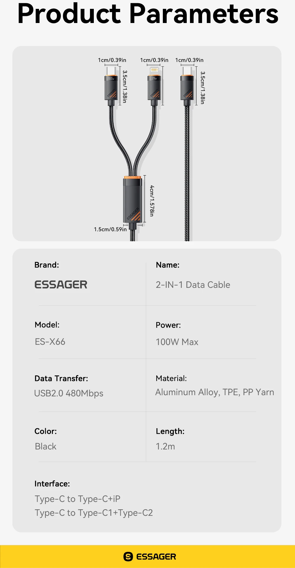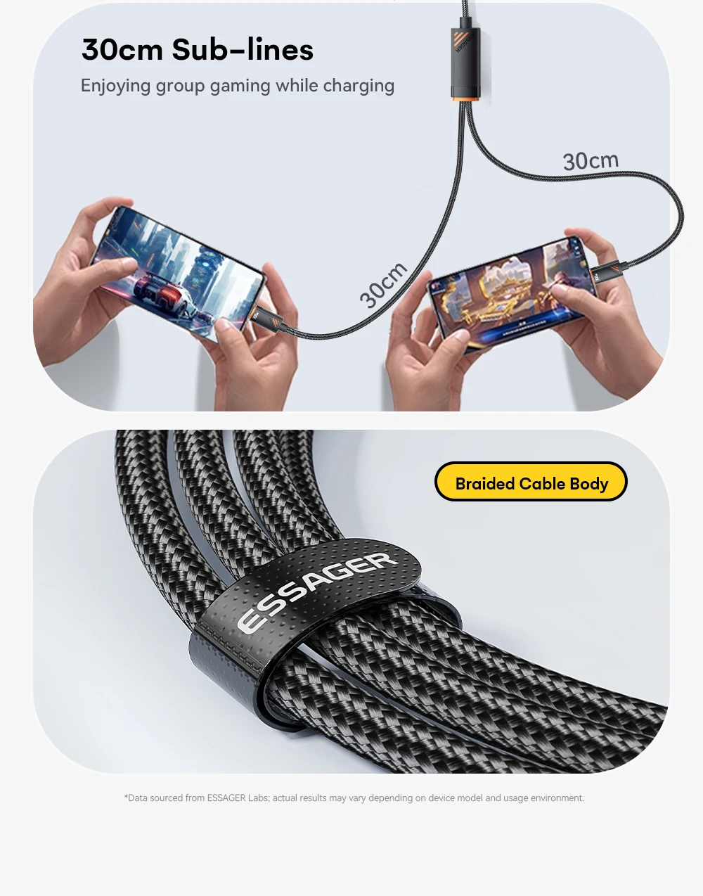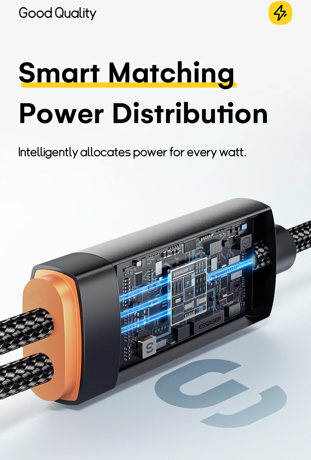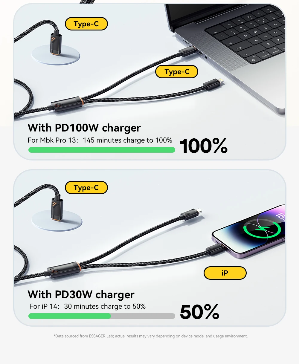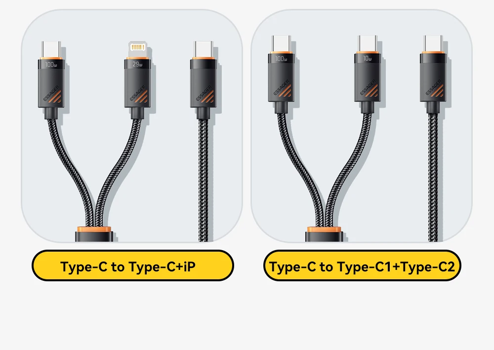 Essager 2 en 1 USB tipo C a tipo C Cable PD 100W Cable de carga rápida para iPhone16 Huawei Laptop Tablet tipo C a Cable de iluminación