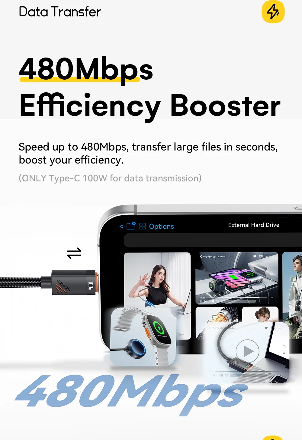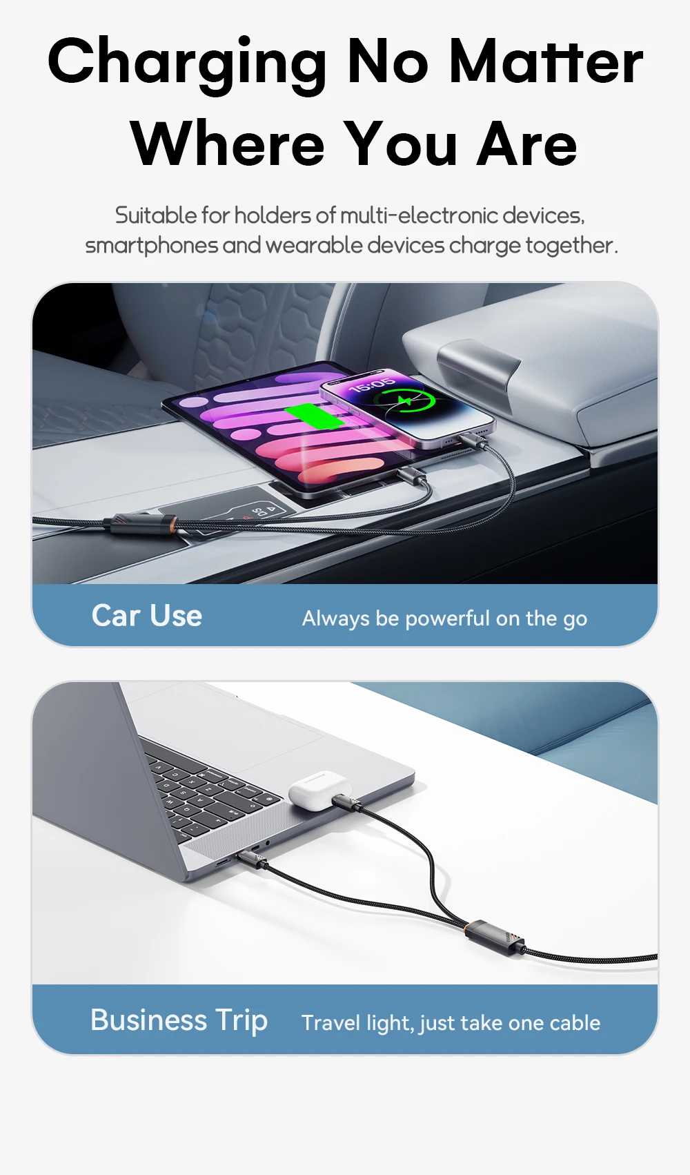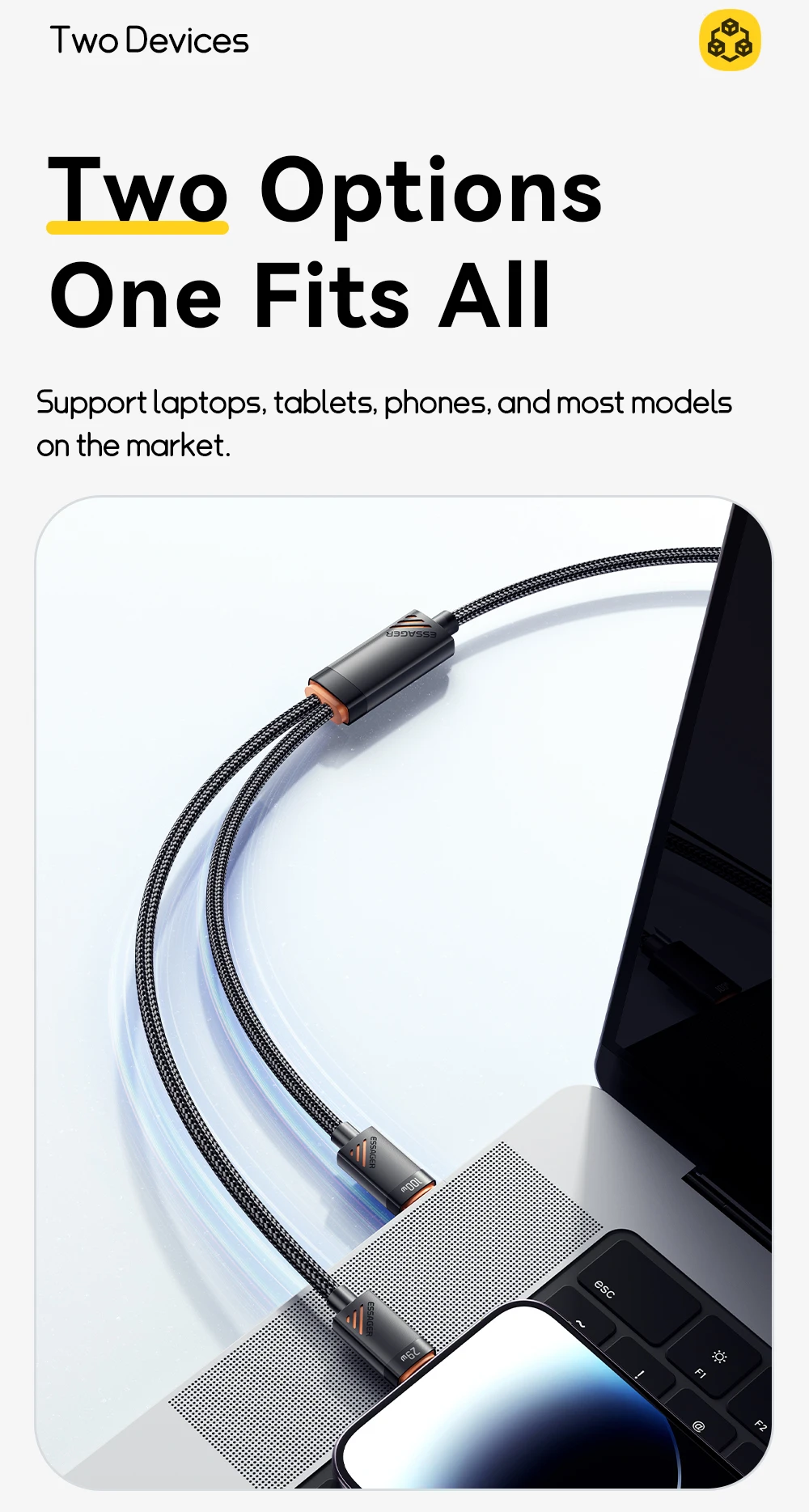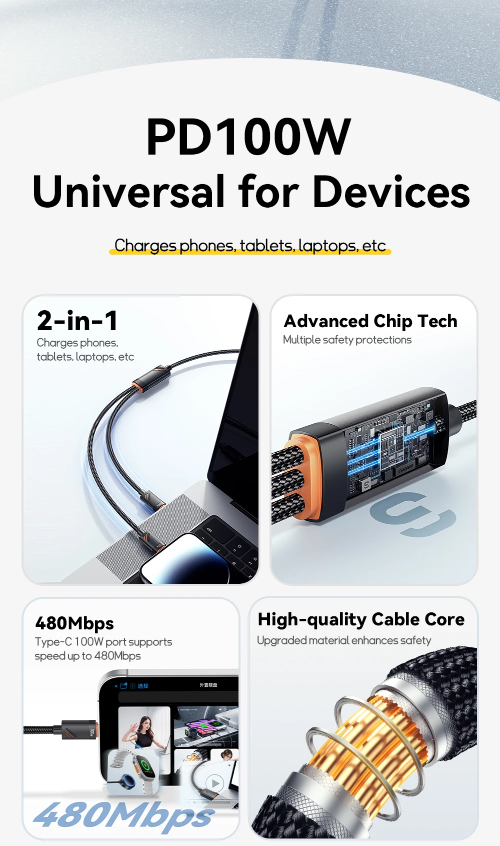 Essager 2 en 1 USB tipo C a tipo C Cable PD 100W Cable de carga rápida para iPhone16 Huawei Laptop Tablet tipo C a Cable de iluminación