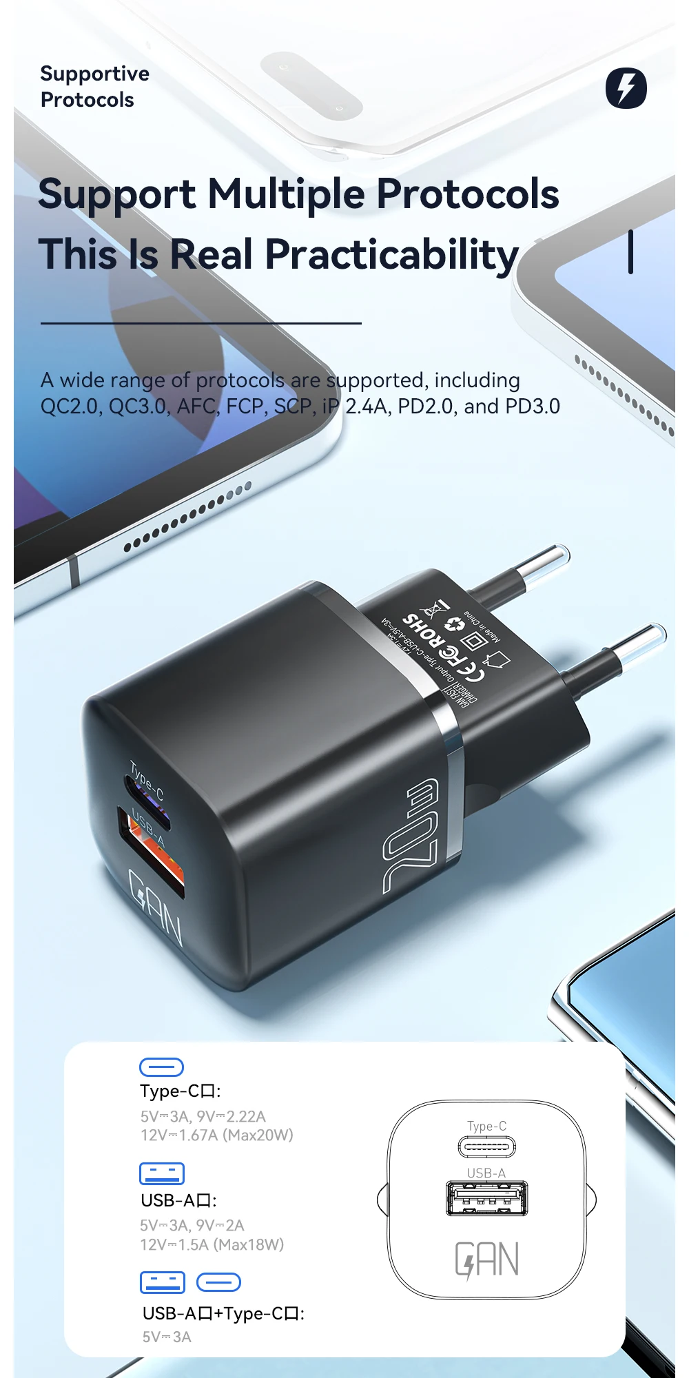 Comprar Essager 20W GaN USB tipo C cargador PD carga rápida teléfono QC 3,0 cargadores rápidos para iPhone 14 13 12 11 Pro Max Mini iPad carga
