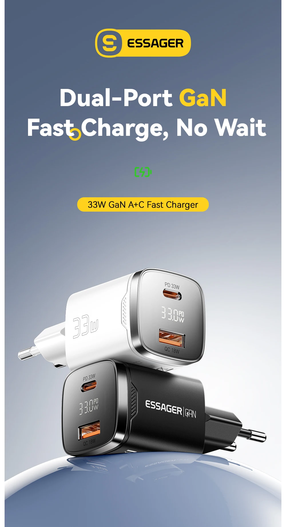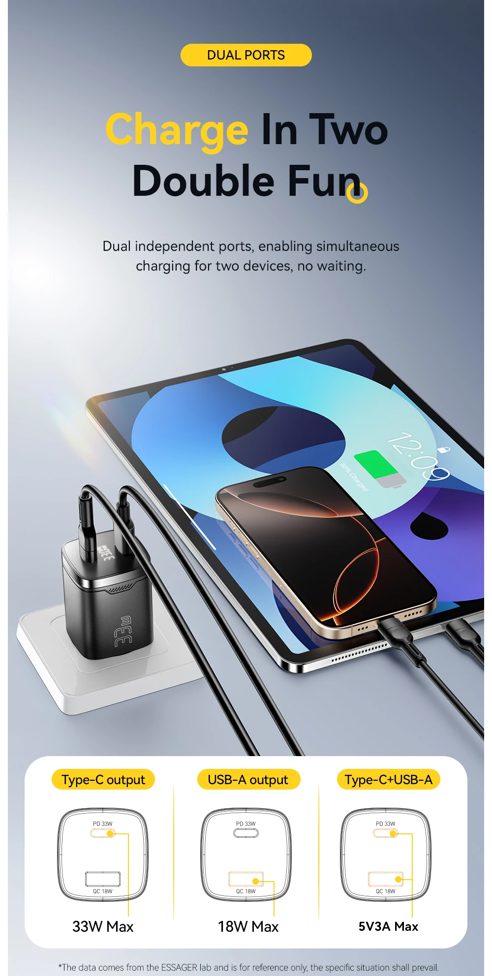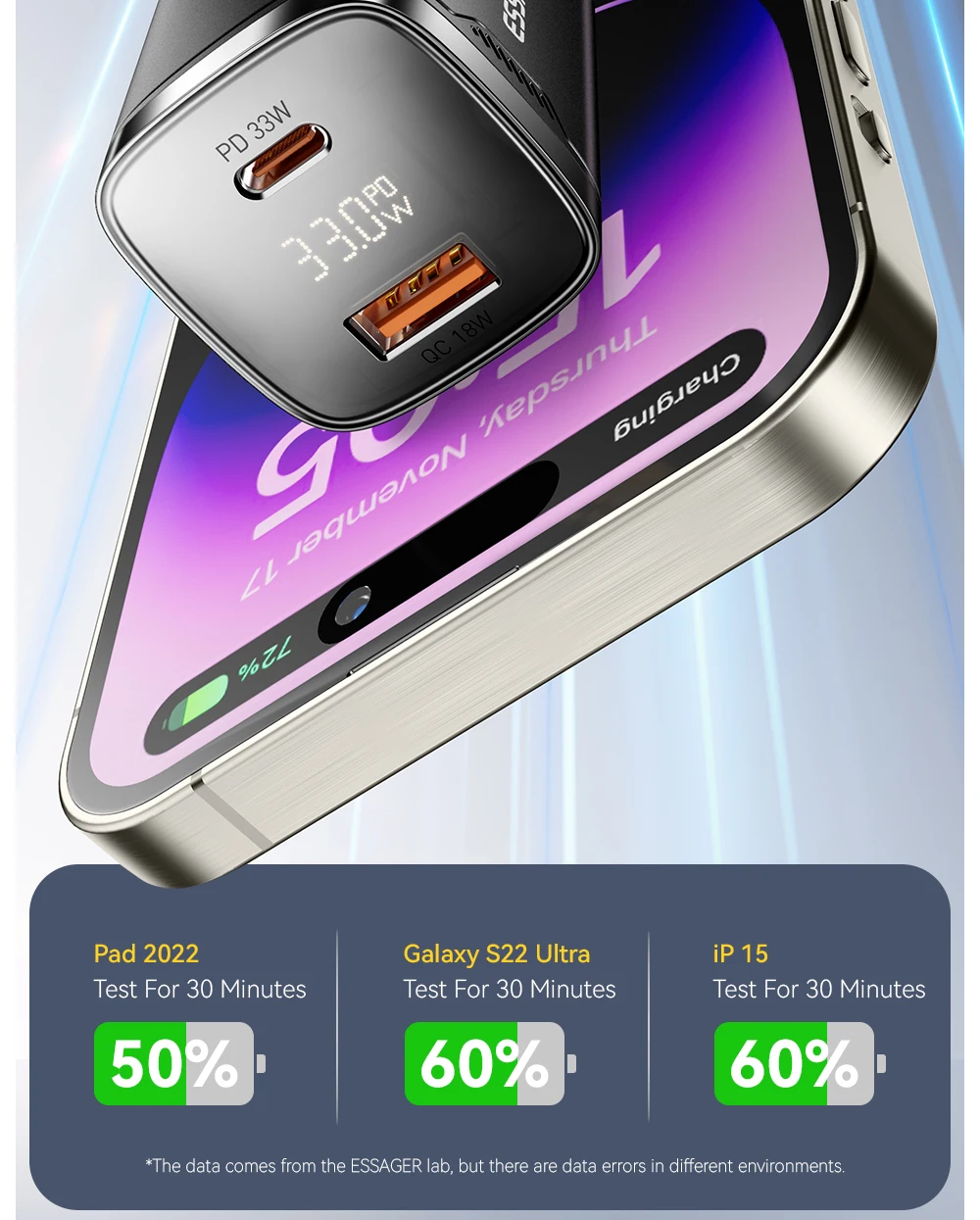 Essager 33W GaN USB C Charger Digital Display PD Fast Charging For iPhone 16 15 14 Max Pro iPad For Xiaomi Poco Samsung Charger