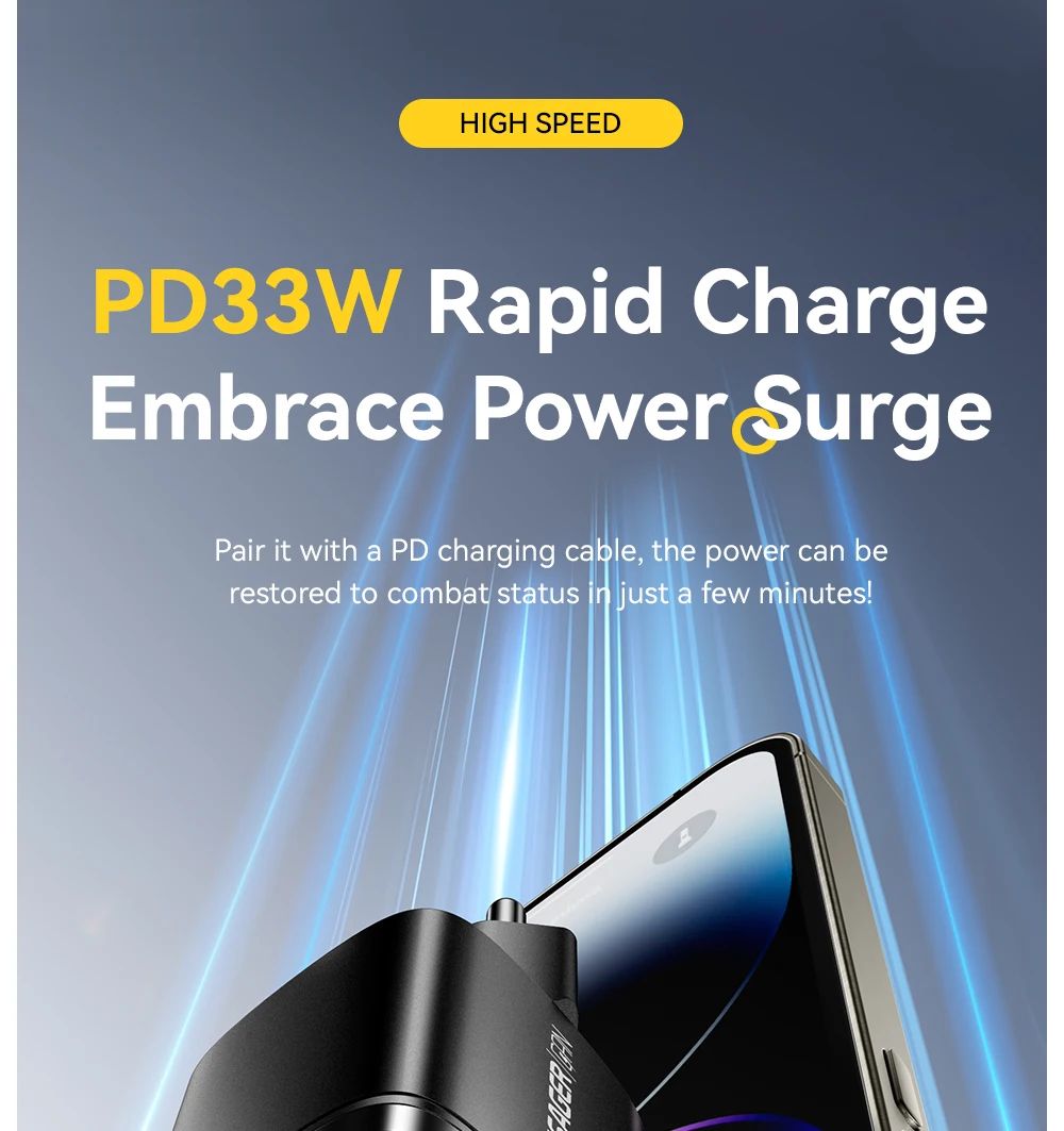 PD fast charging, charge IP15 to 60% in 30 minutes, charge ipad to 60% in 30 minutes, charge Macbook to 50% in 30 minutes, Huawei, Samsung, OPPO, VIVO support fast charging, Xiaomi mobile phones may not support Xiaomi Turbo fast charging due to protocol issues.
