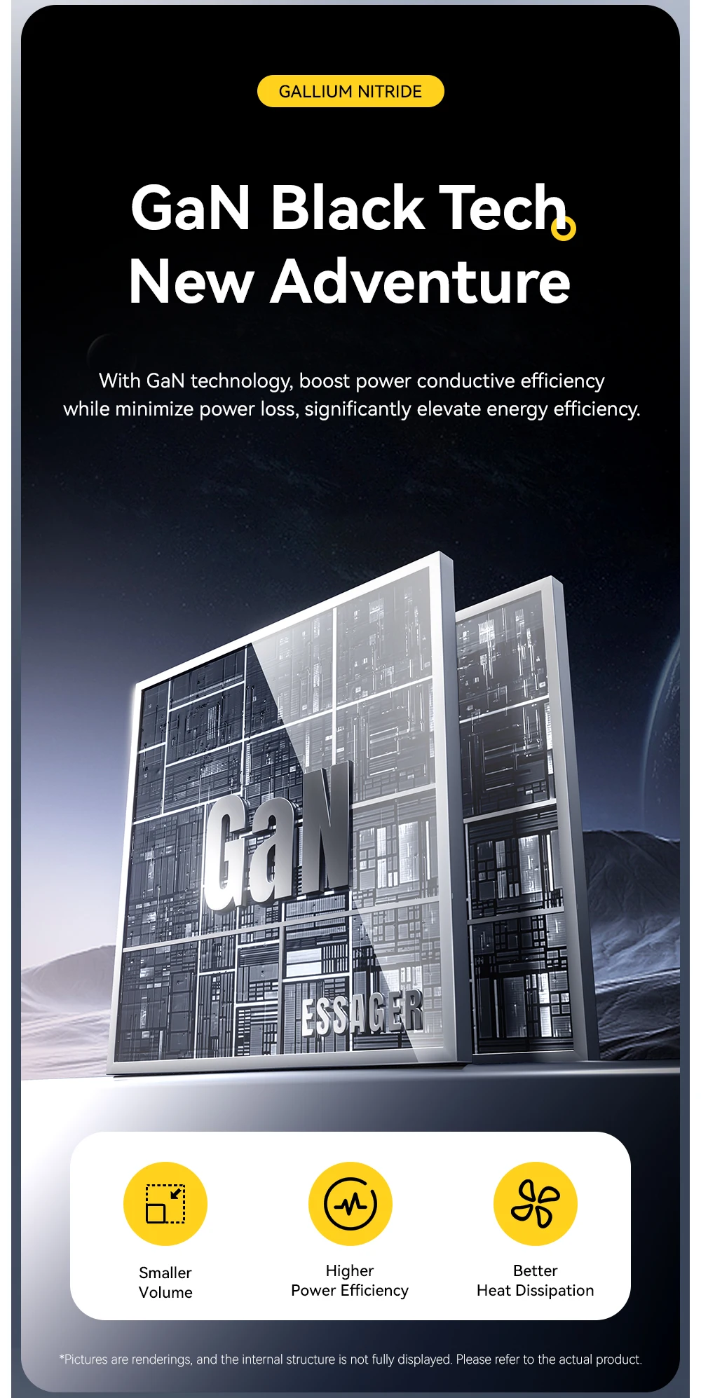 6. gallium nitride technology, better heat dissipation, higher efficiency, small size