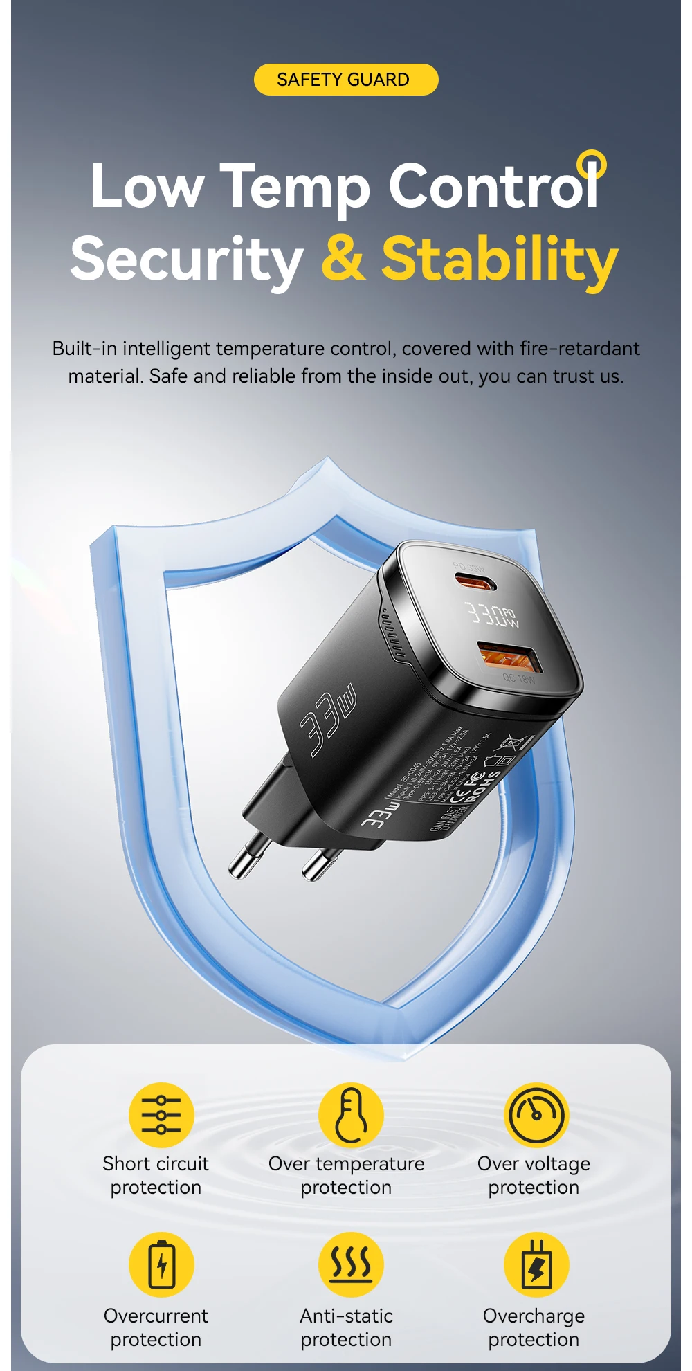Essager 33W GaN USB Type C Charger Digital Display PD Fast Charging For iPhone 16 15 14 Pro