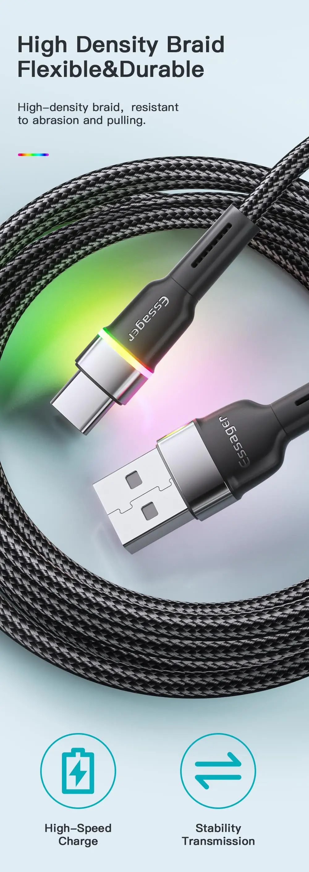 Comprar Essager 3A USB tipo C Cable USB A a tipo C Cables de carga rápida para teléfono móvil Samsung Redmi Xiaomi Cable de datos Cable cargador