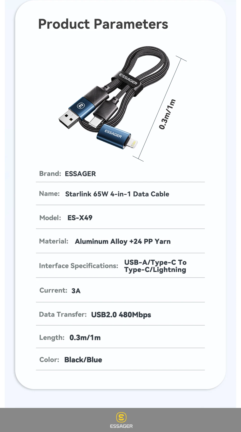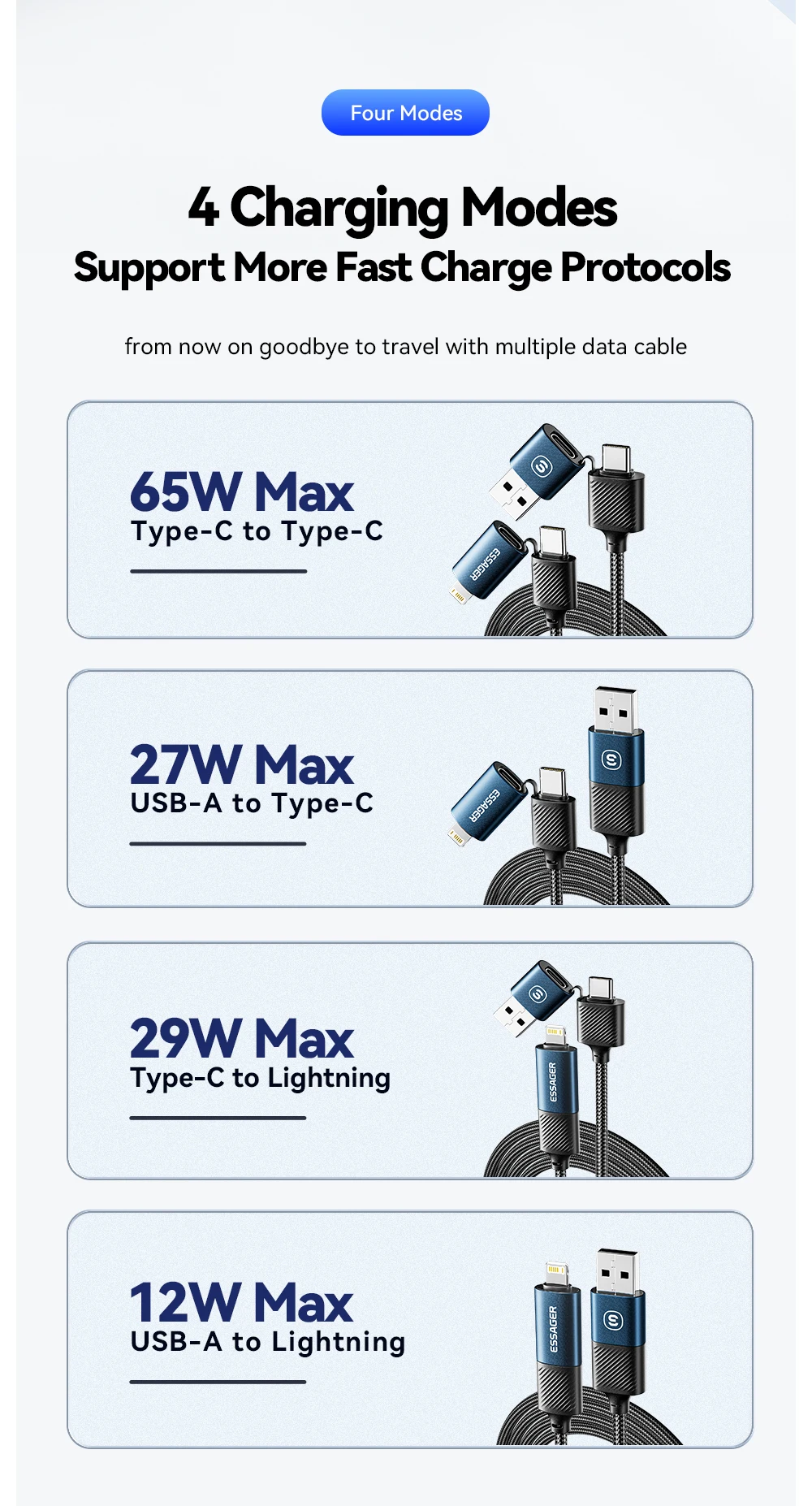 Nombre del producto: cable de datos 4 en 1 de 65 W