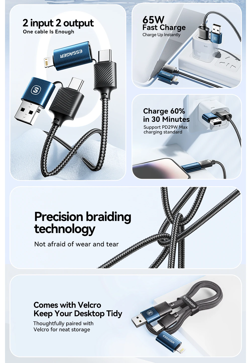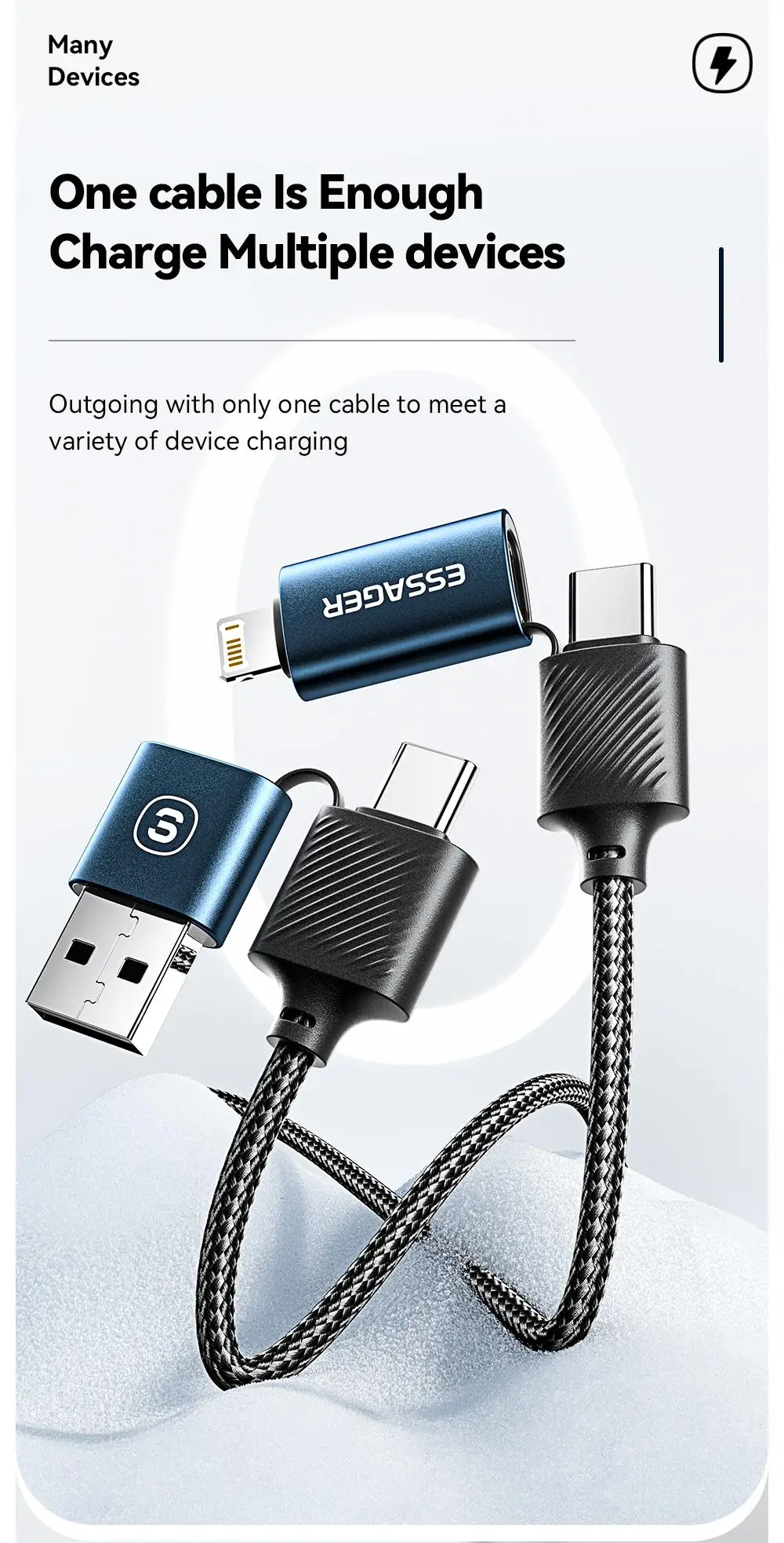 Comprar Essager 4 en 1 Cable USB tipo C 65W PD Cable de carga rápida tipo C a Cable tipo C para iPhone 15 14 13 Pro Max iPad HUAWEI Xiaomi