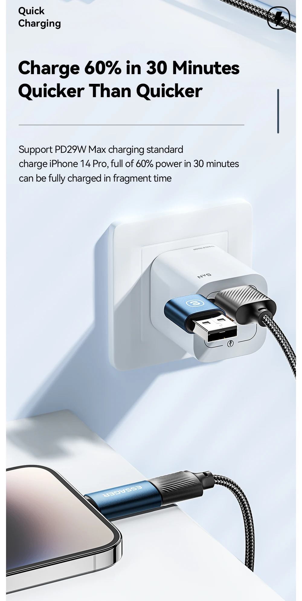 2.Carga rápida, solo se necesitan 30 minutos (C-L) para cargar completamente el iPhone 14 Pro al 60% y solo 1,5 horas (C-C) para MacBook Air.
