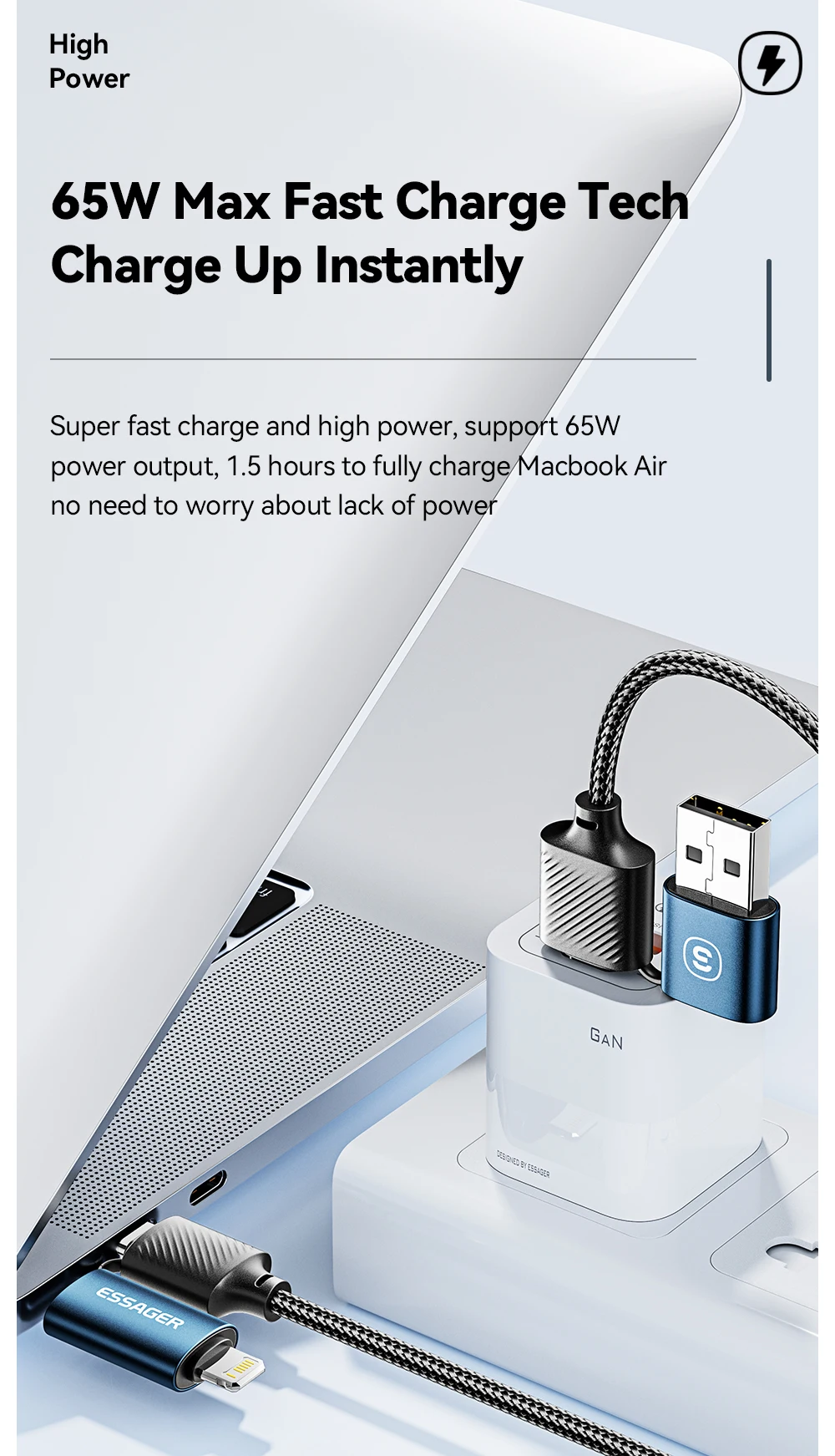 1.Carga de alta potencia de 65 W, interfaz cuatro en uno USB-C PD capacidad de carga de 65 W.