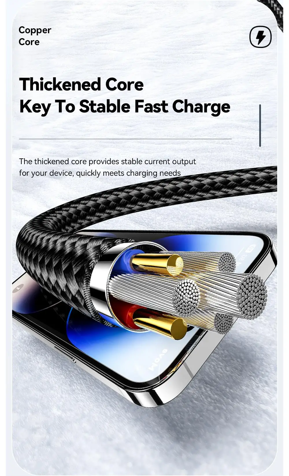 5.El cable está reforzado con núcleos de alambre más gruesos para una carga más rápida y un rendimiento garantizado.