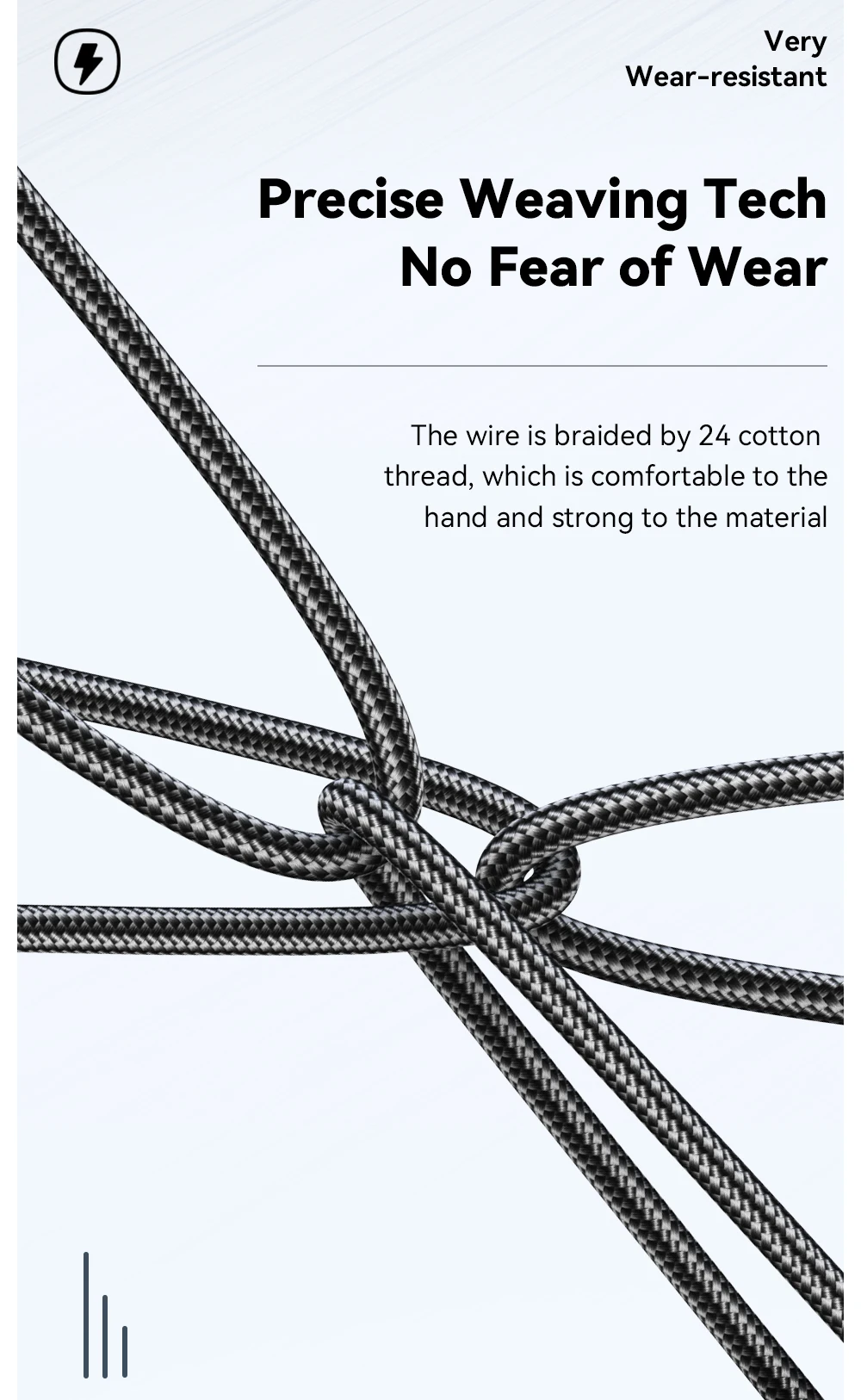 6.El cable está hecho de un material de hilo PP duradero y resistente de 24 capas para evitar que se deshilache y se rompa.